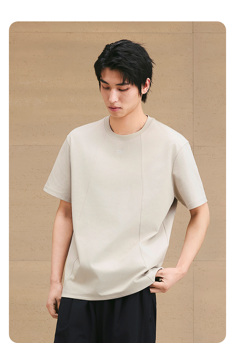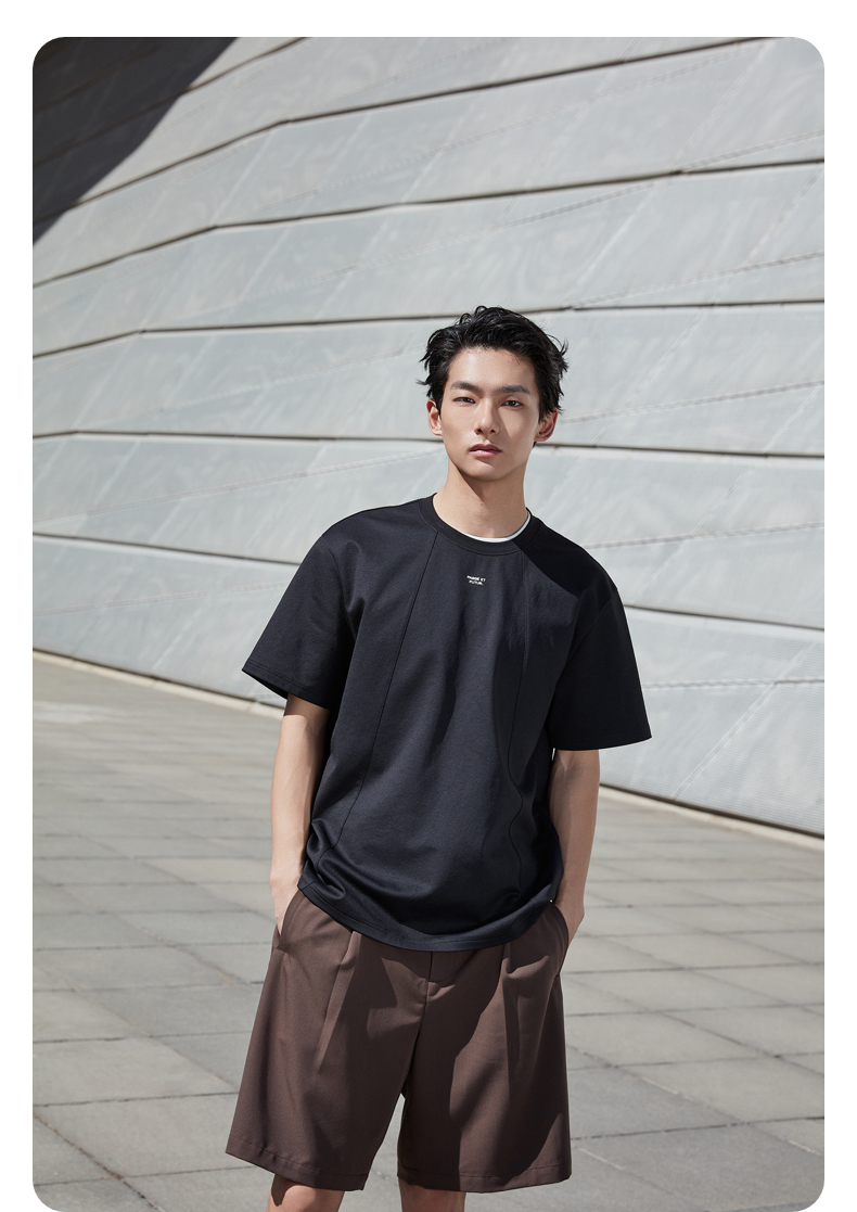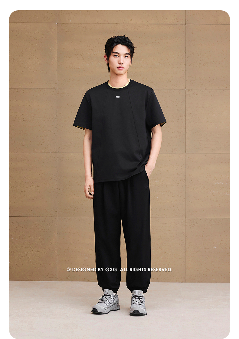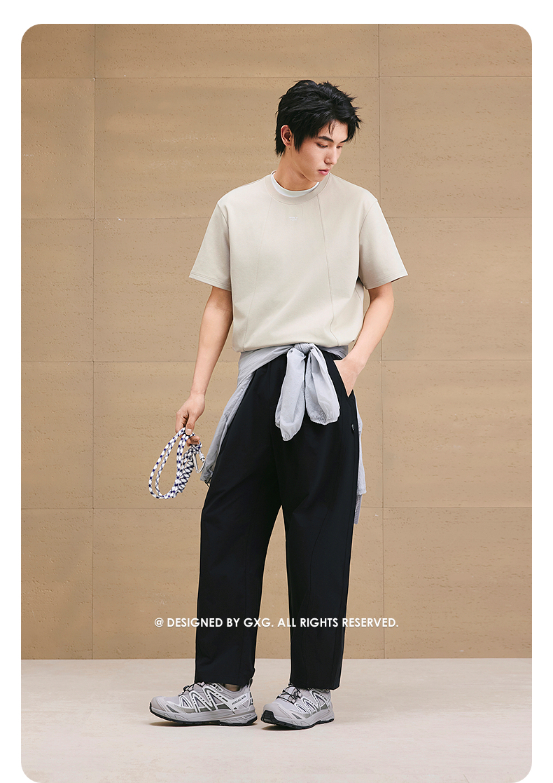 GXG男装 圆领T恤分割线上衣美式复古短袖针织 2025夏季新品