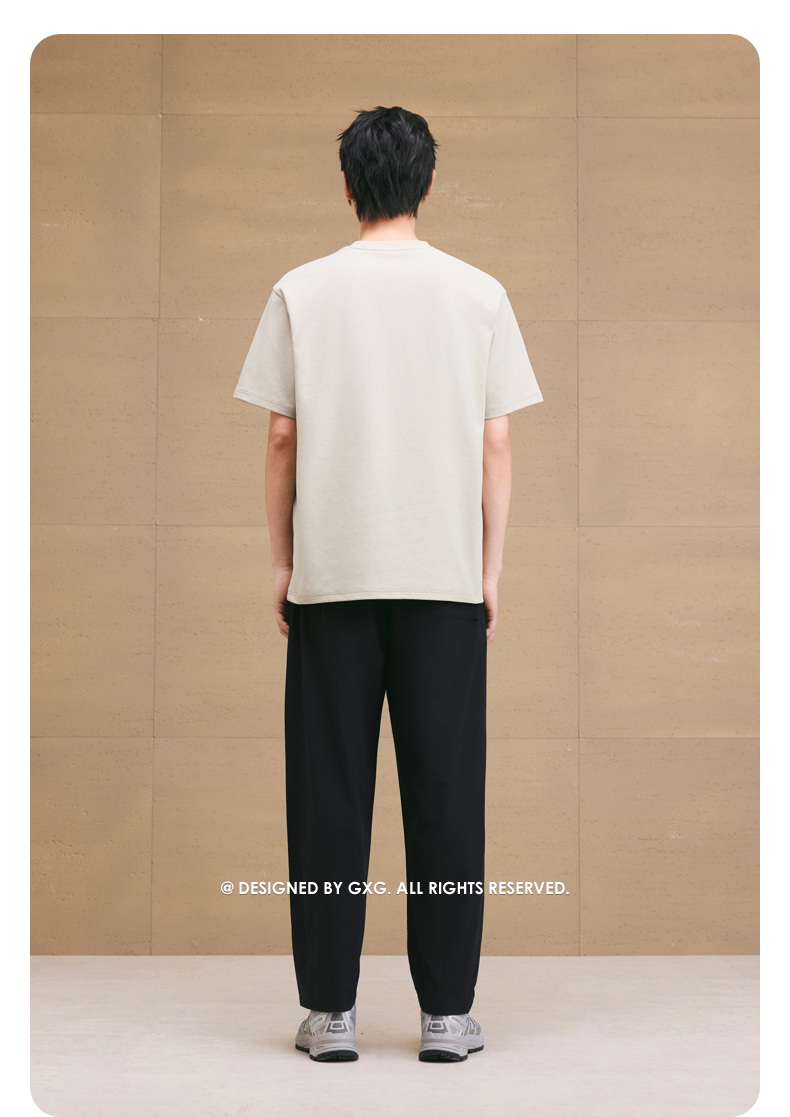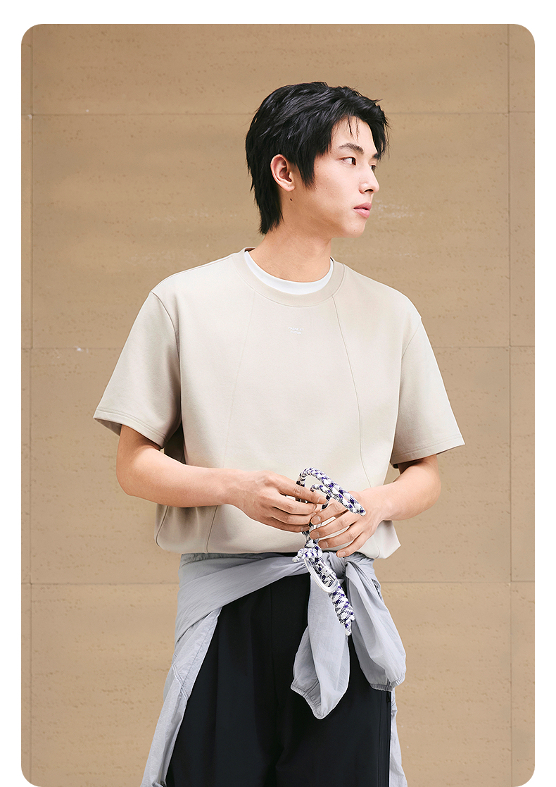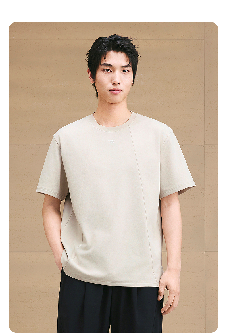 GXG男装 圆领T恤分割线上衣美式复古短袖针织 2025夏季新品