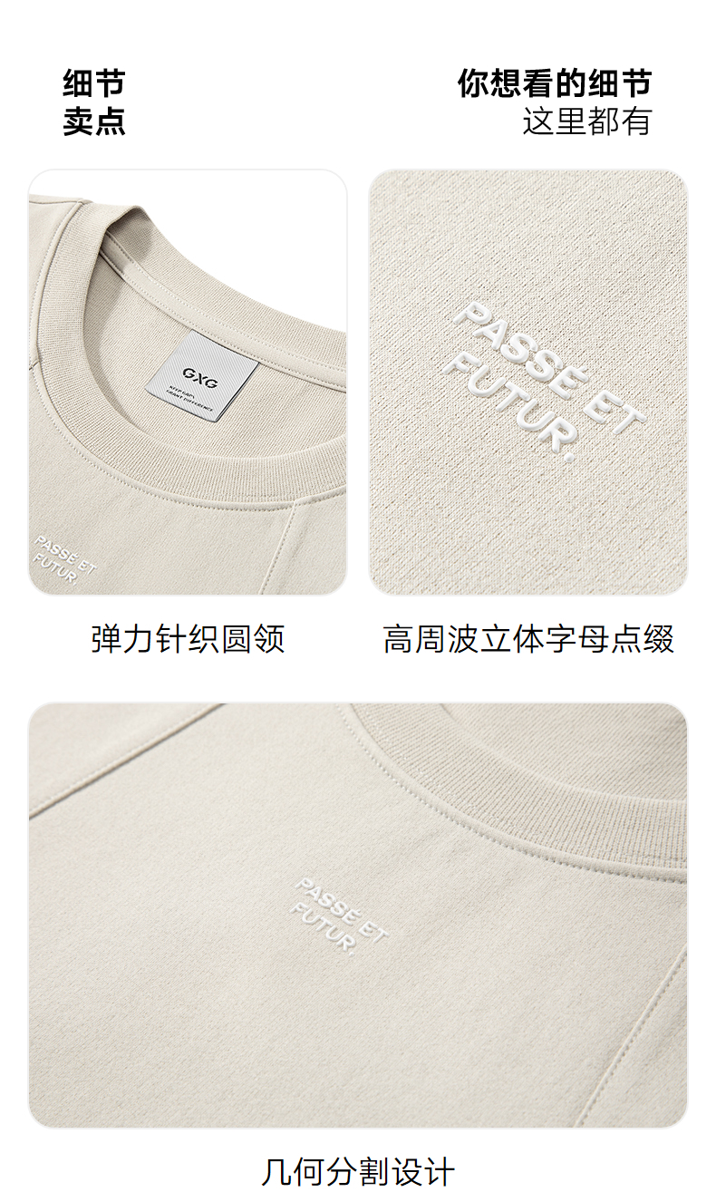 GXG男装 圆领双色小标卫衣通勤长袖上衣分割线卫衣 2025春季热卖