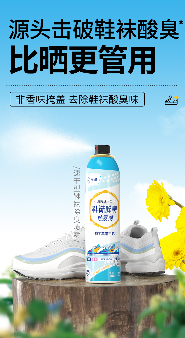 净狮鞋袜除臭喷雾248ml/瓶, 一喷除鞋袜酸臭, 比晒更管用, 快速干爽, 穿鞋自由