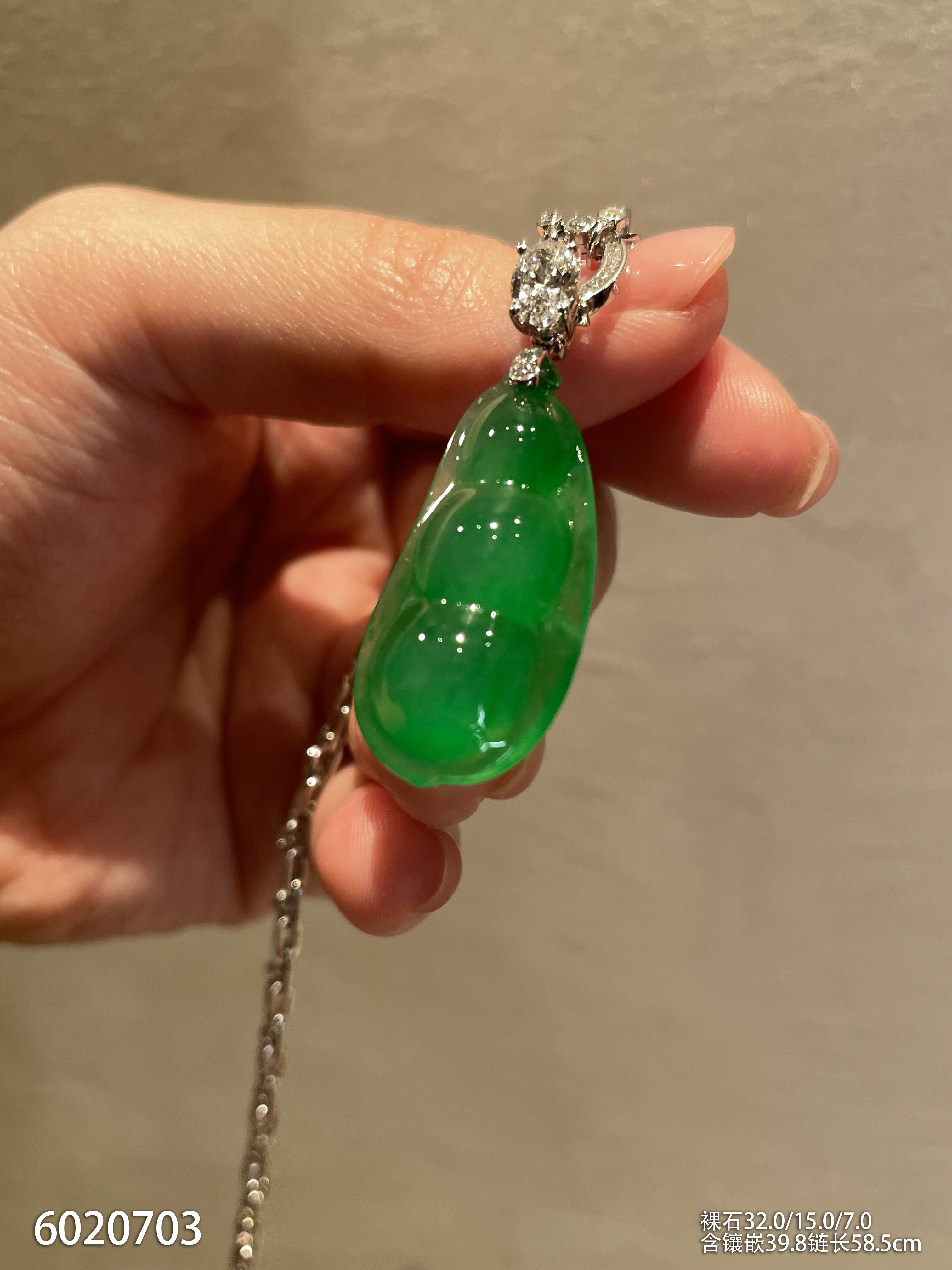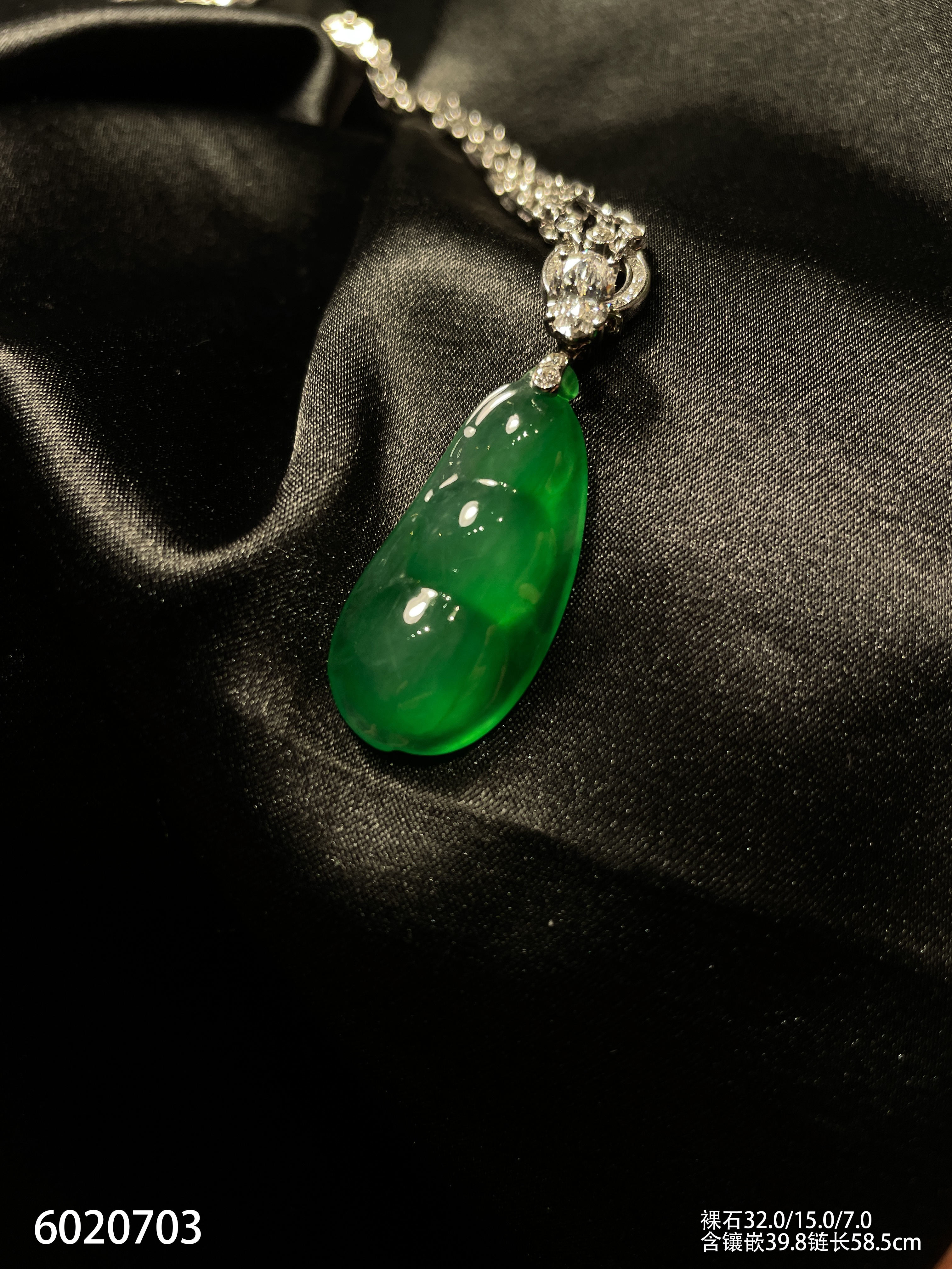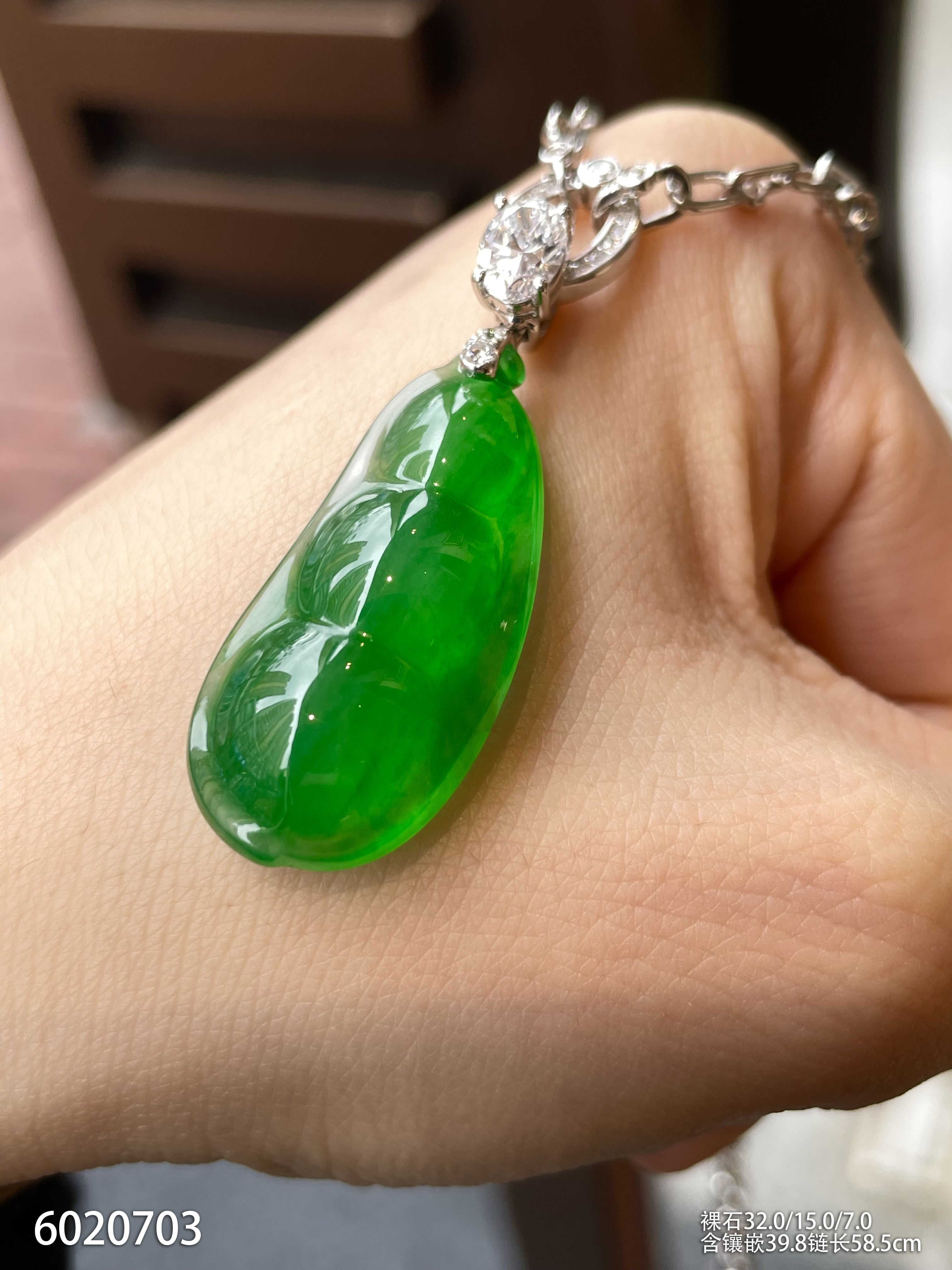 玻璃种艳绿福豆吊坠【6020703】具体价格微信咨询