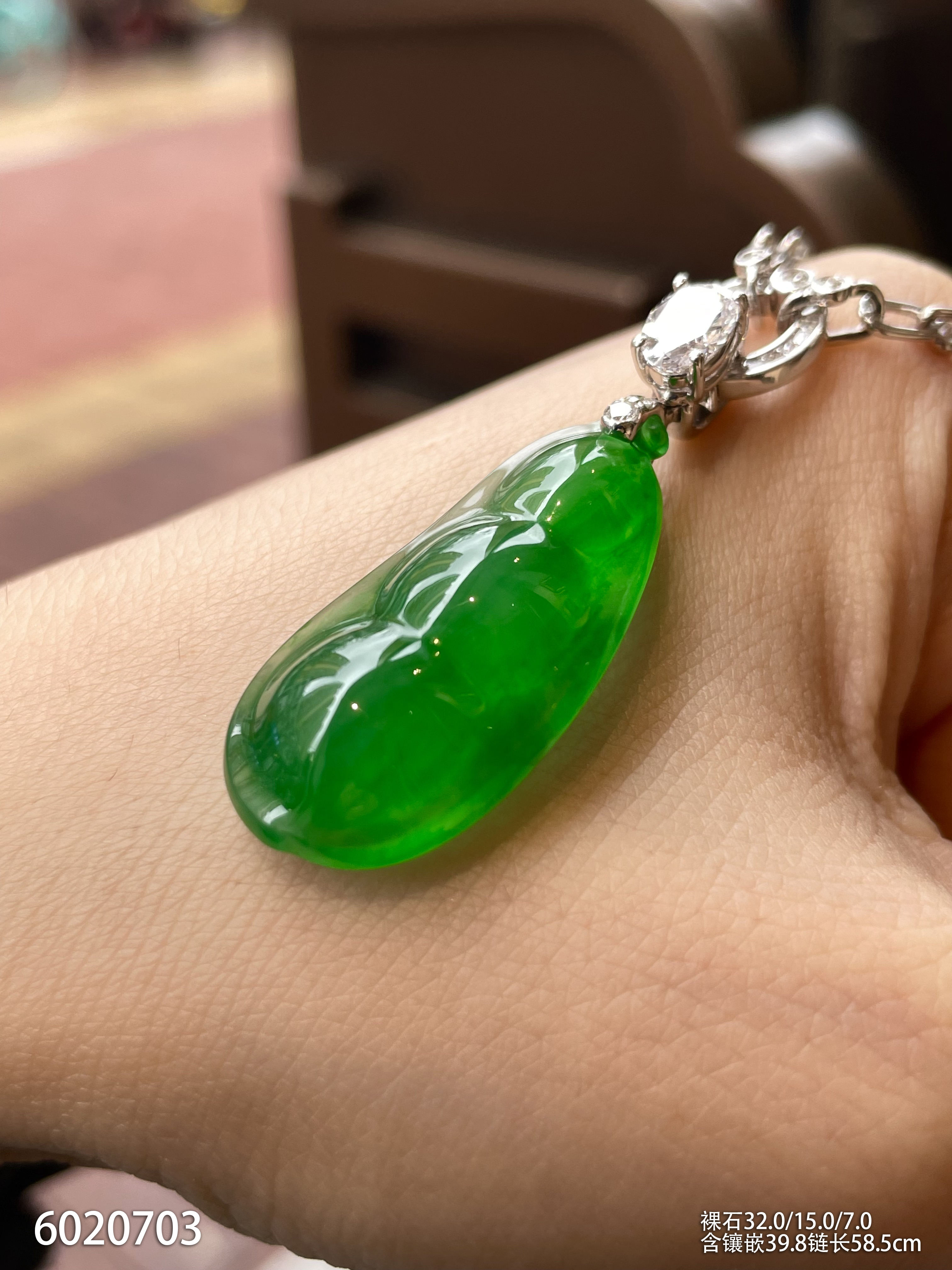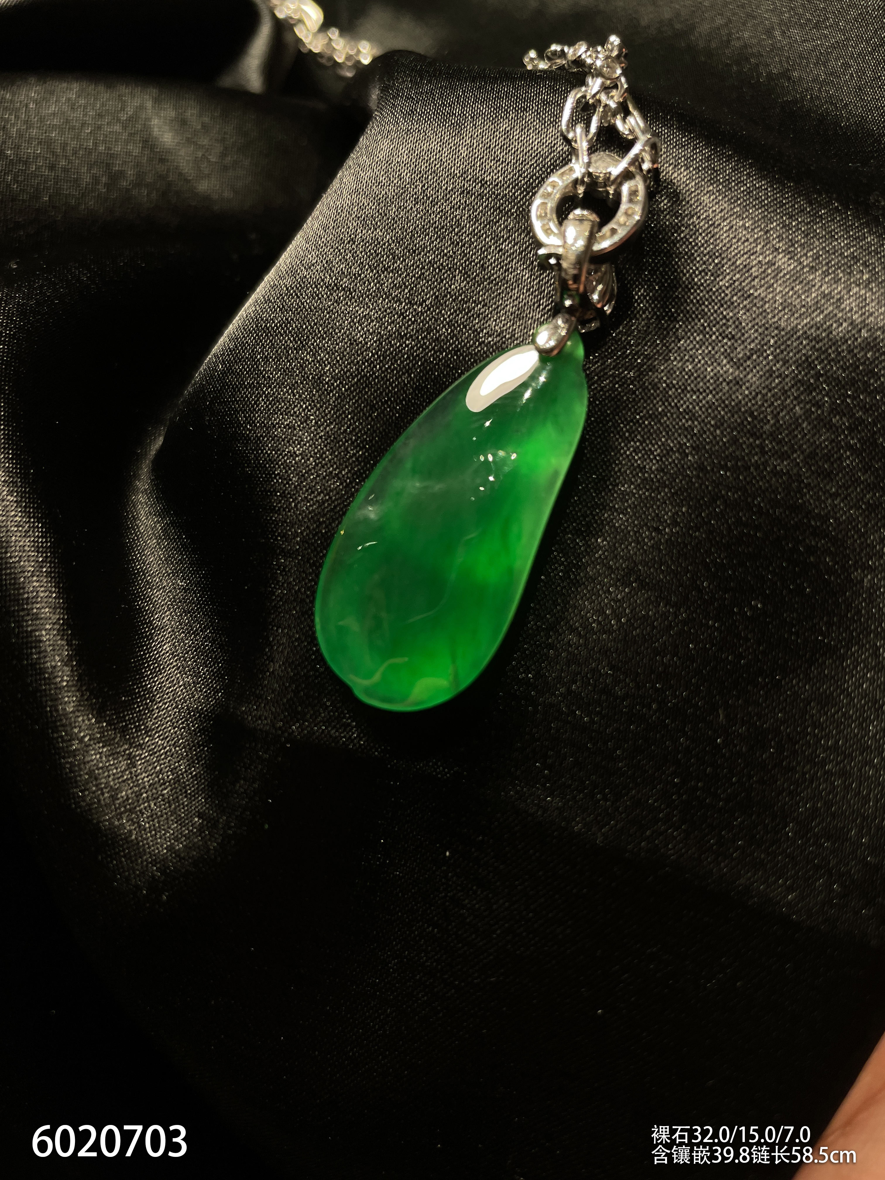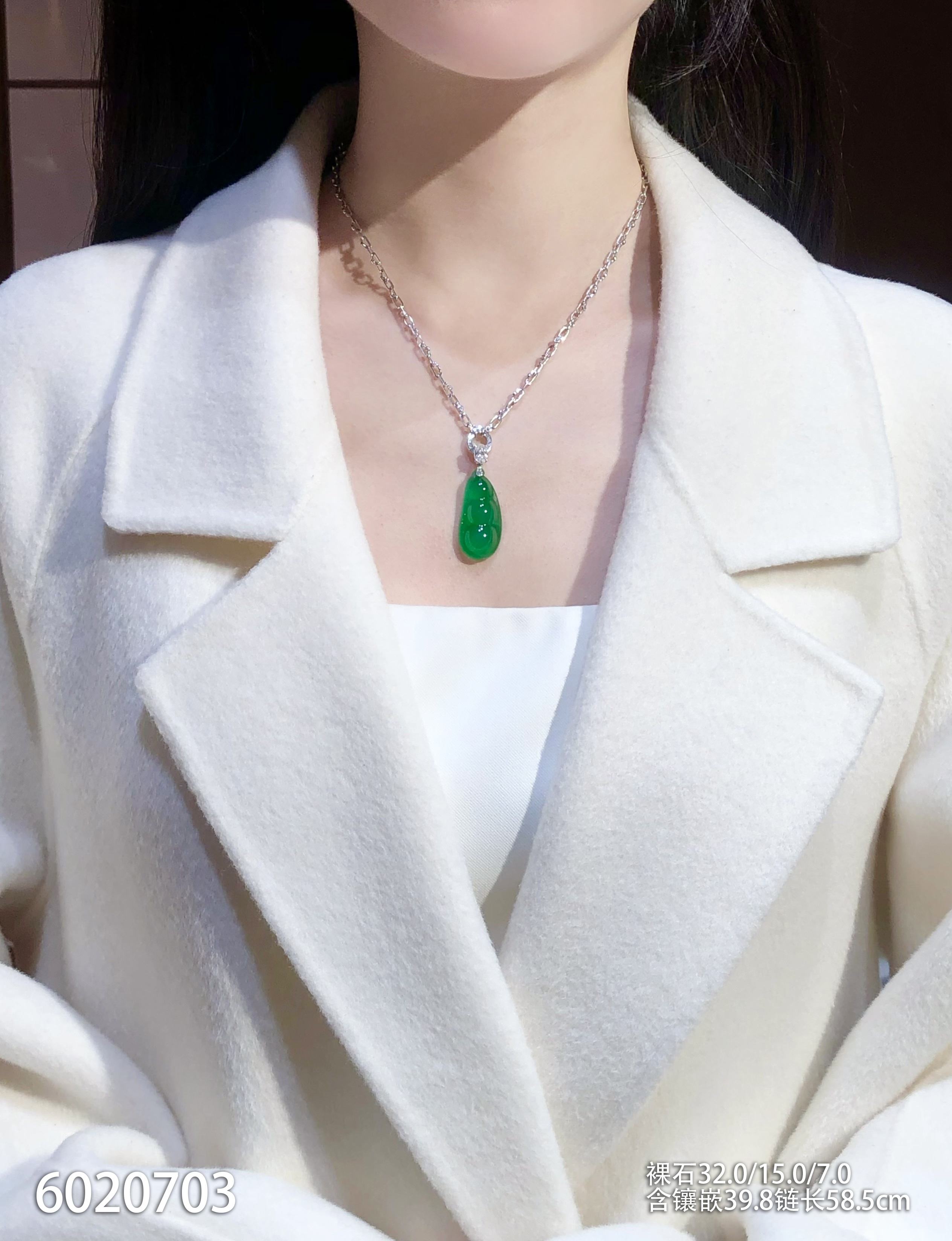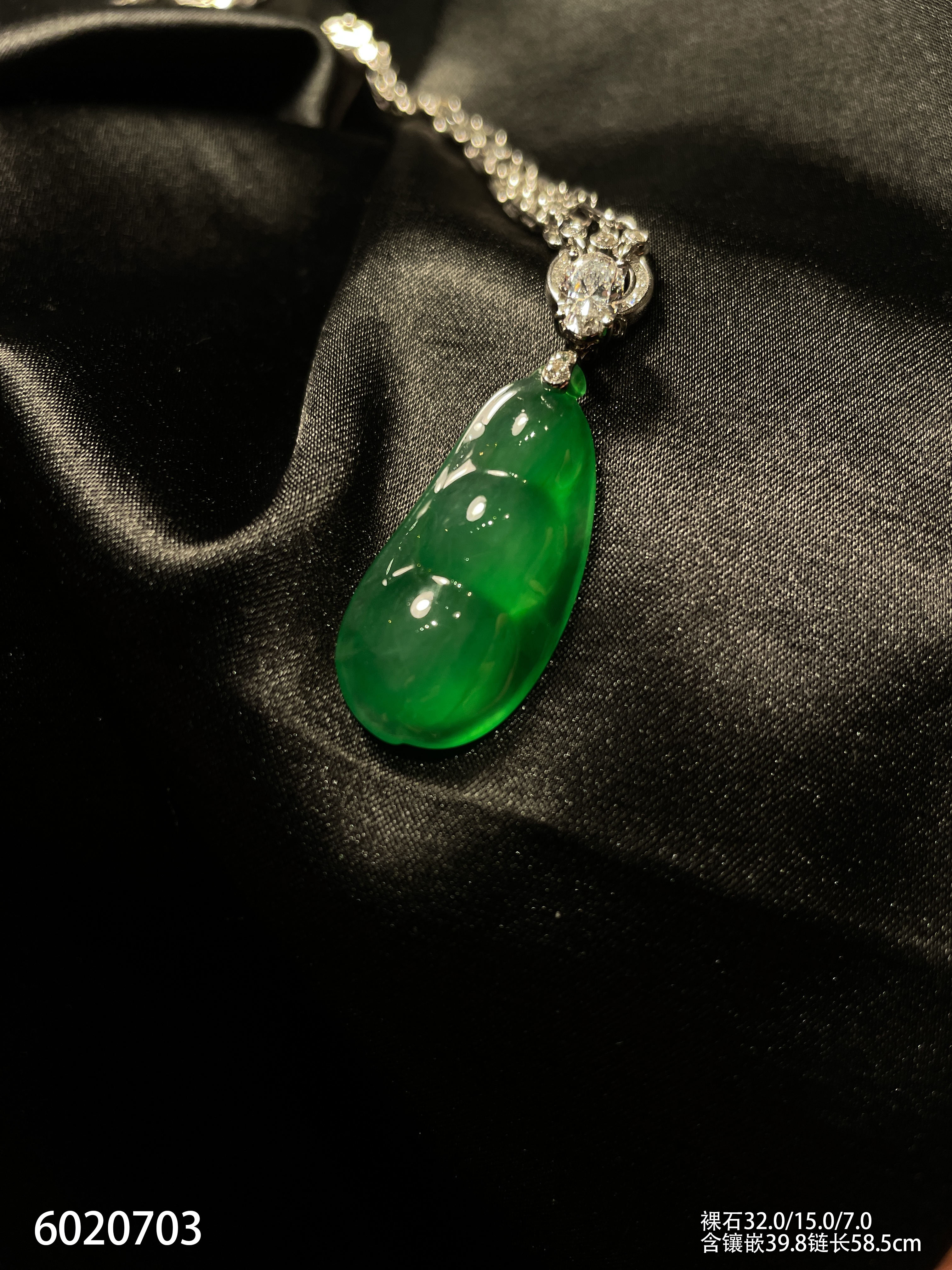 玻璃种艳绿福豆吊坠【6020703】具体价格微信咨询