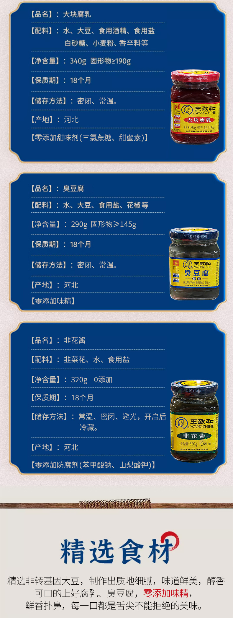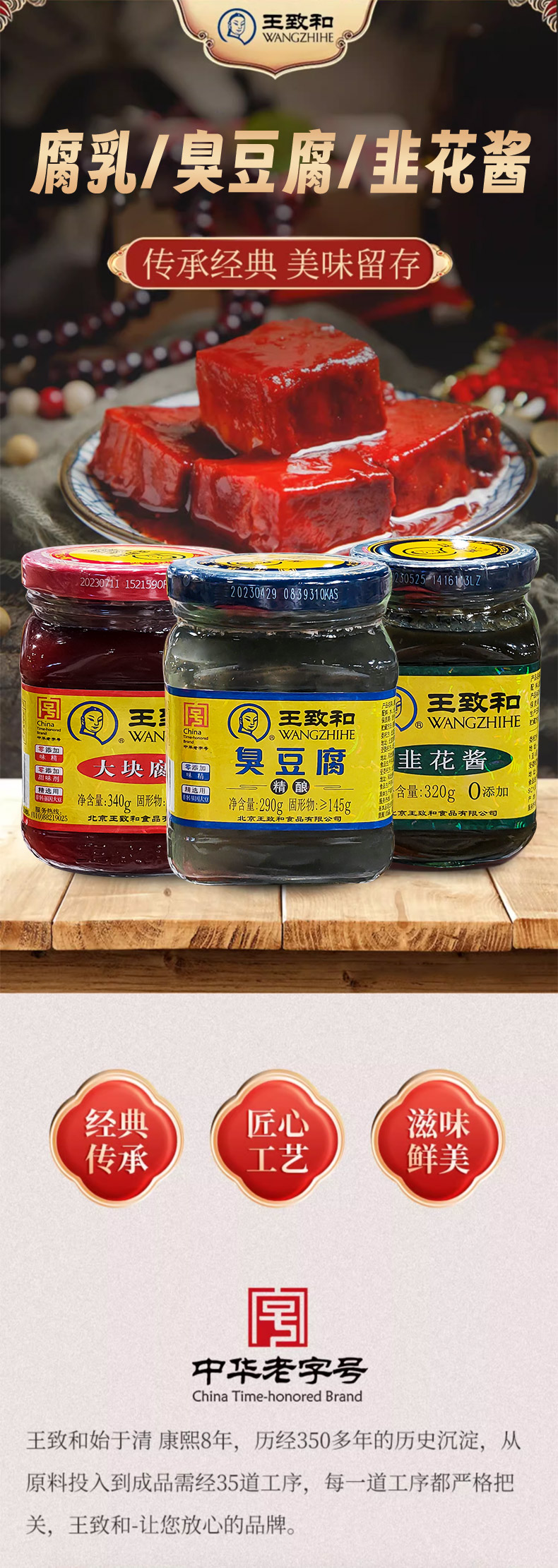 王致和臭豆腐|大块腐乳|韭花酱290g-340g