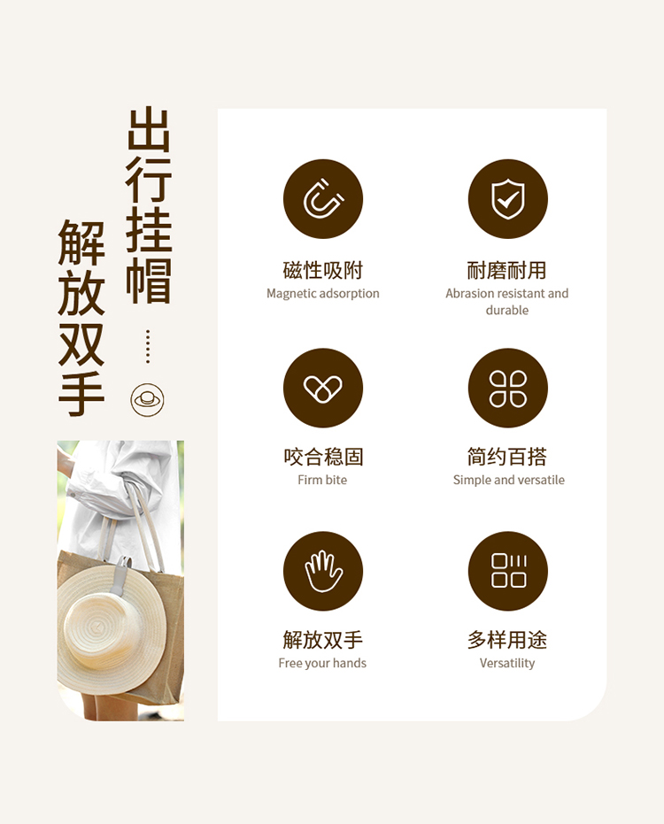 FaSoLa 旅行外出帽子收纳夹太阳帽挂钩便携挂扣强吸力挂钩帽子神器