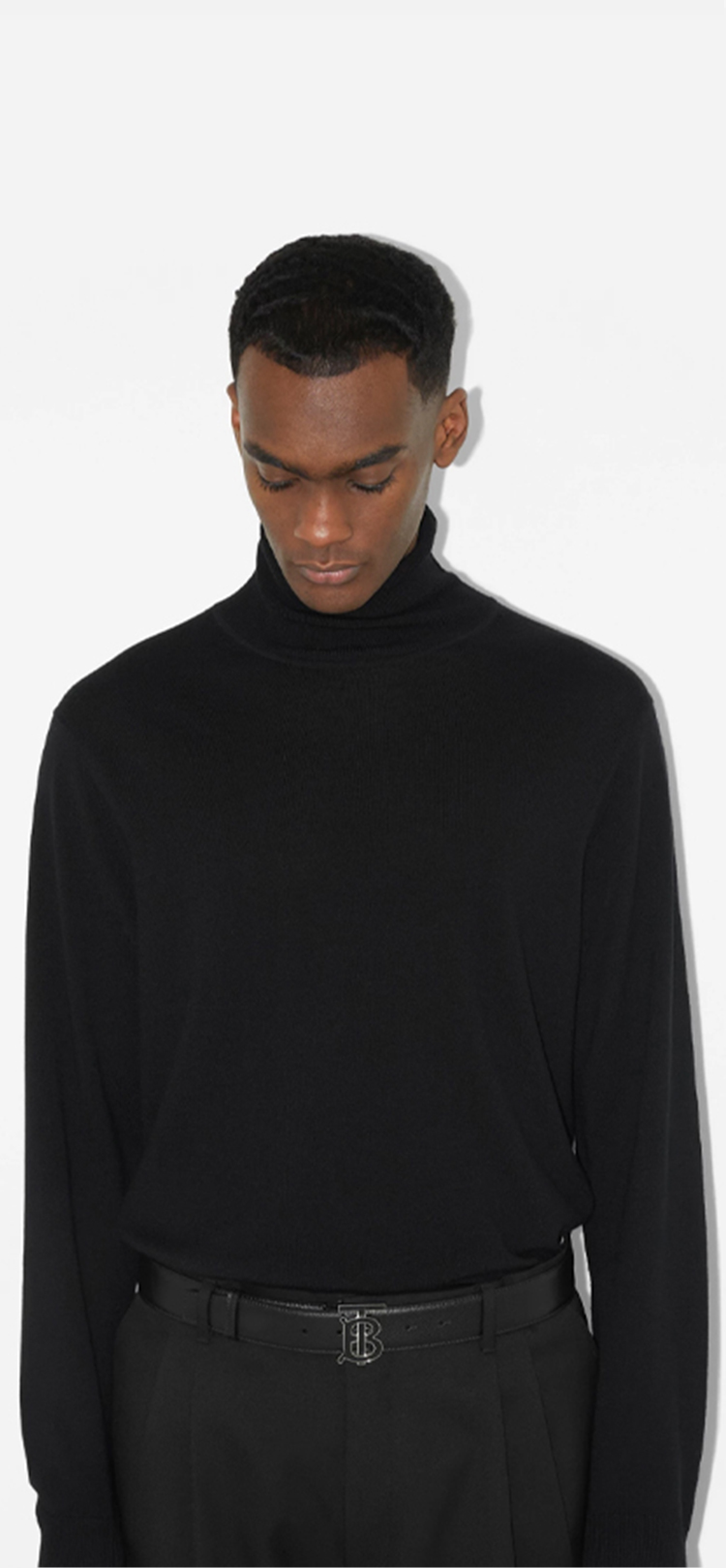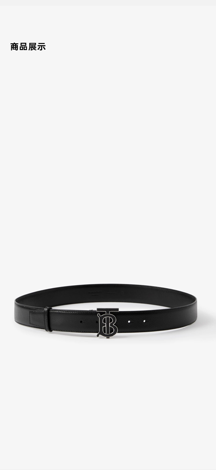 BURBERRY 巴宝莉 男士粒纹皮革 TB 搭扣腰带 黑色 8065975 A1189