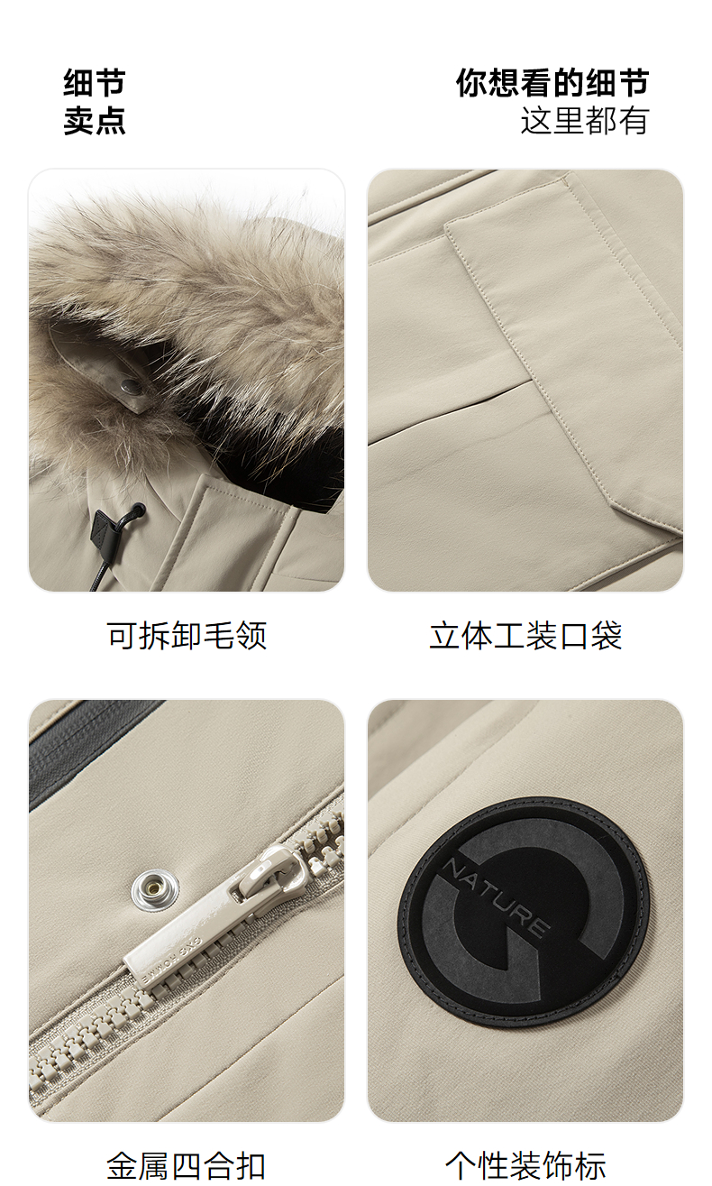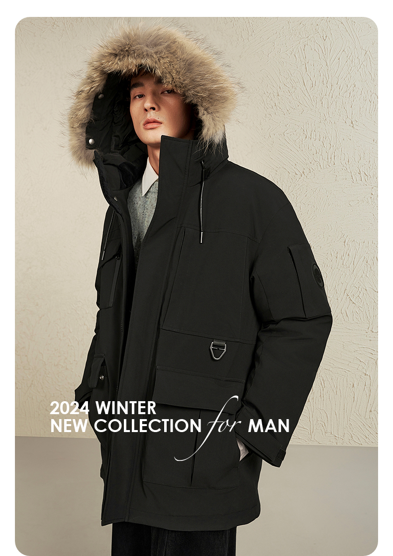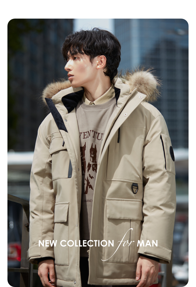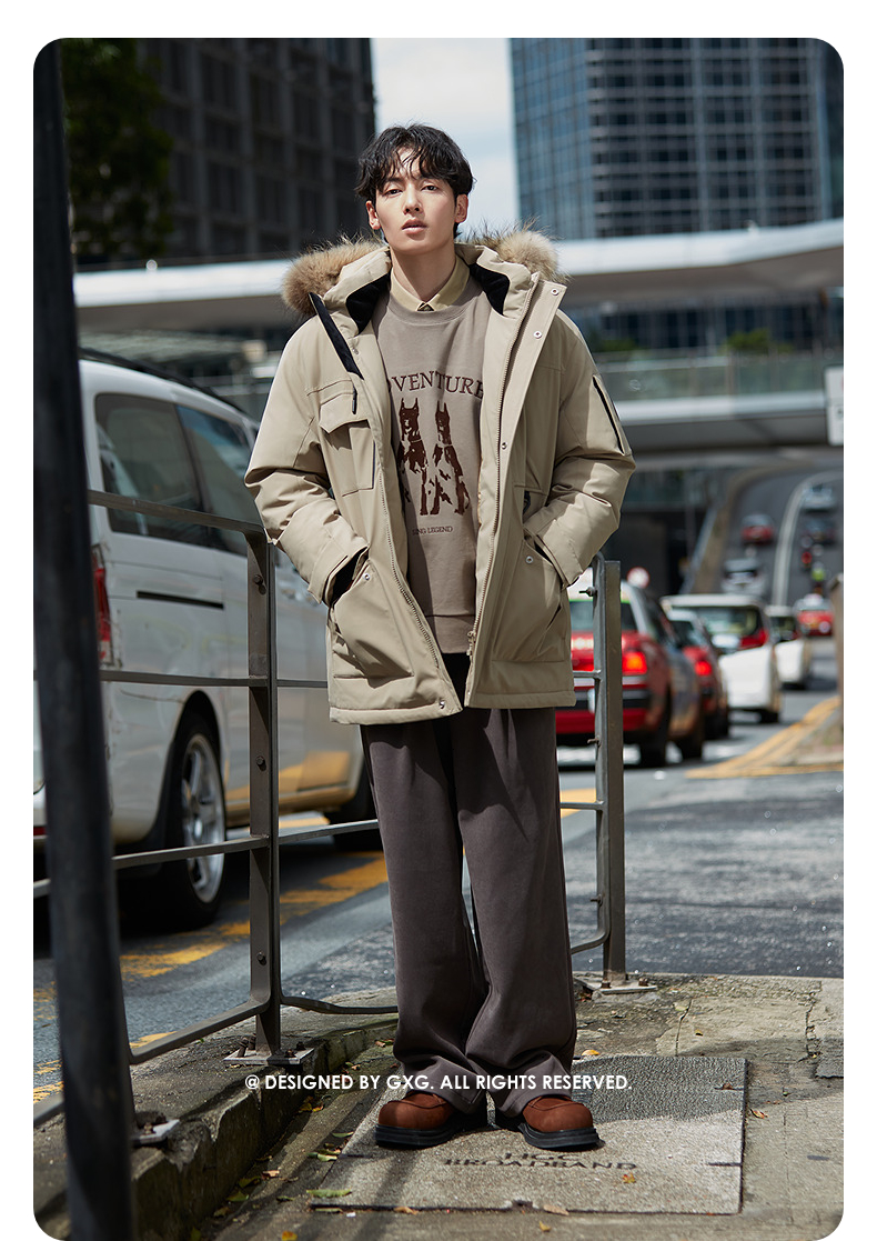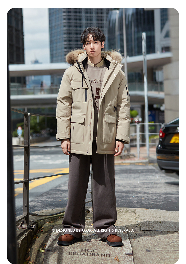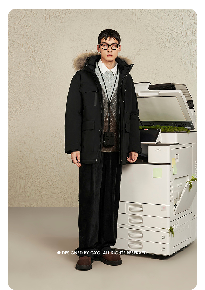 【三防/鹅绒】GXG男装大鹅羽绒服男毛领工装羽绒外套通勤24冬热卖羽绒服