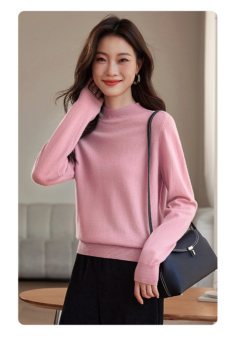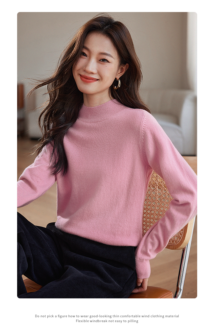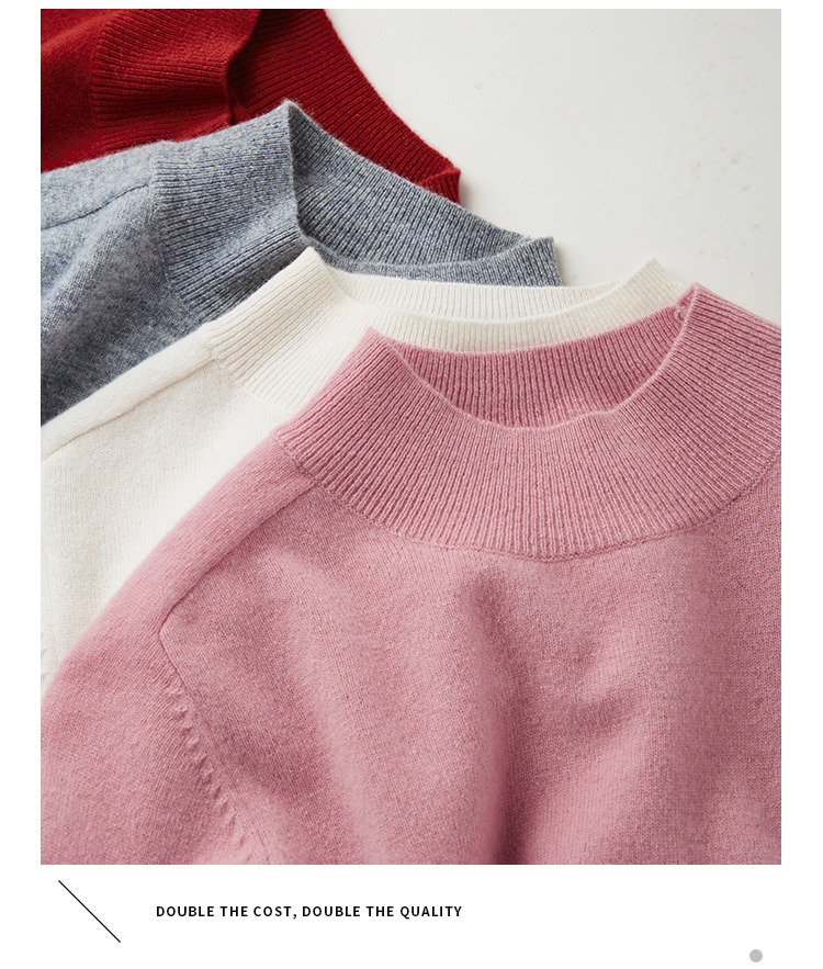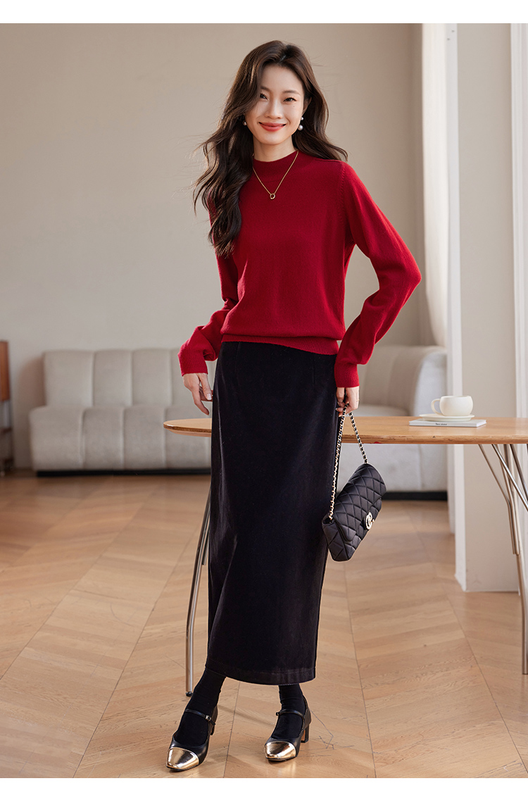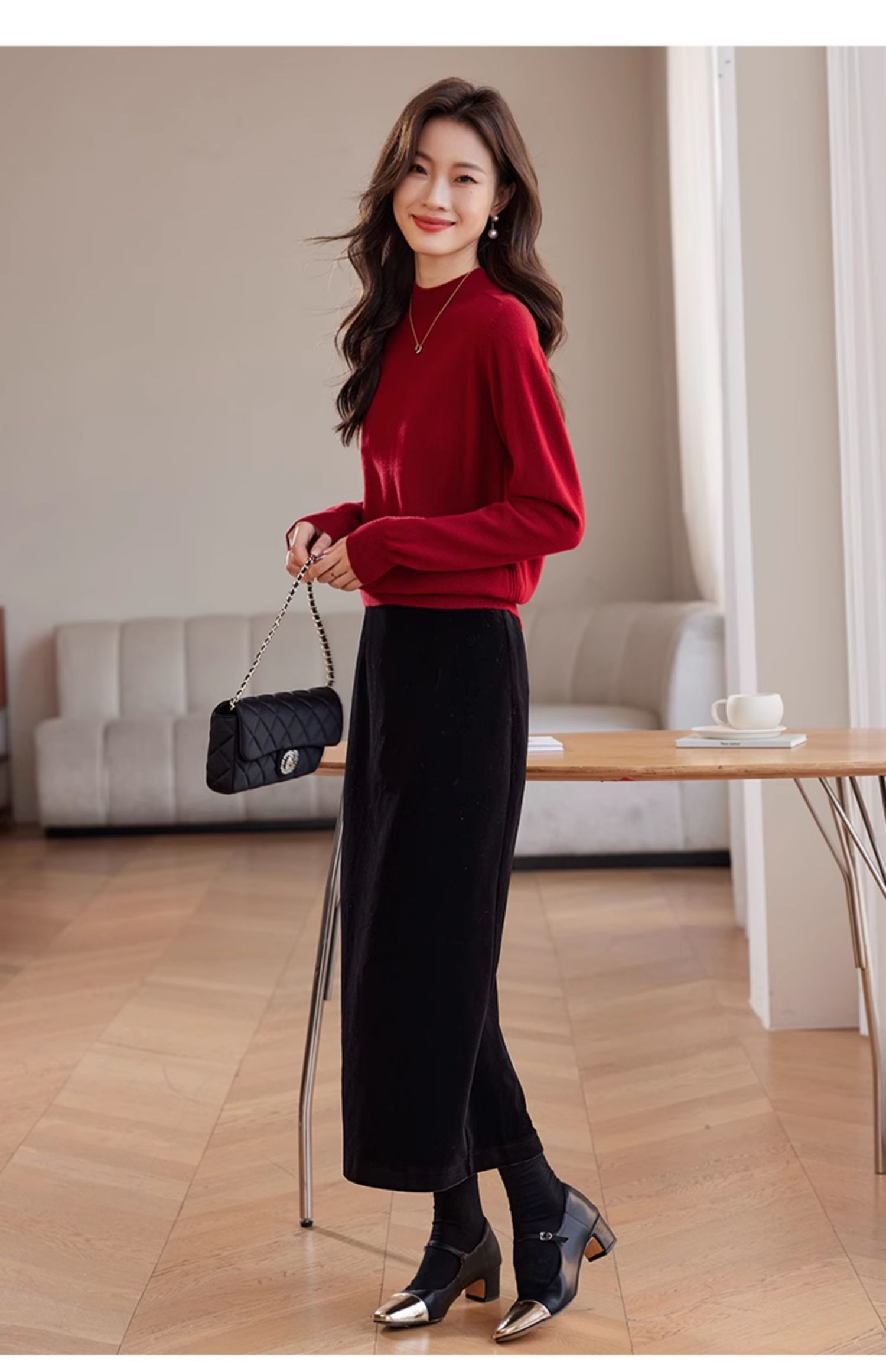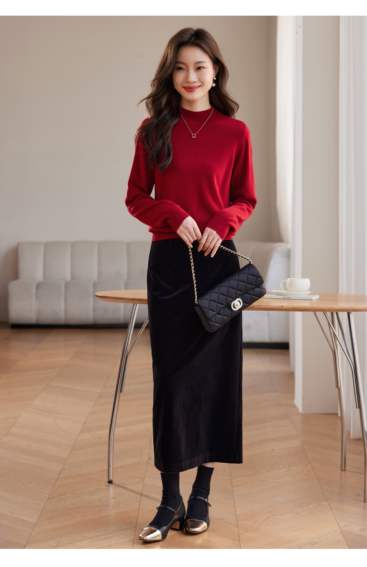 【年货节】熙世界红色100%纯羊毛衫女秋冬款半高领毛衣宽松羊绒针织打底衫