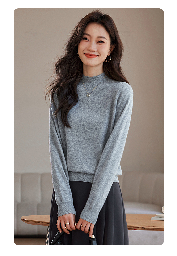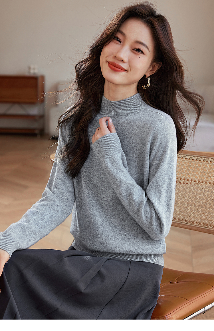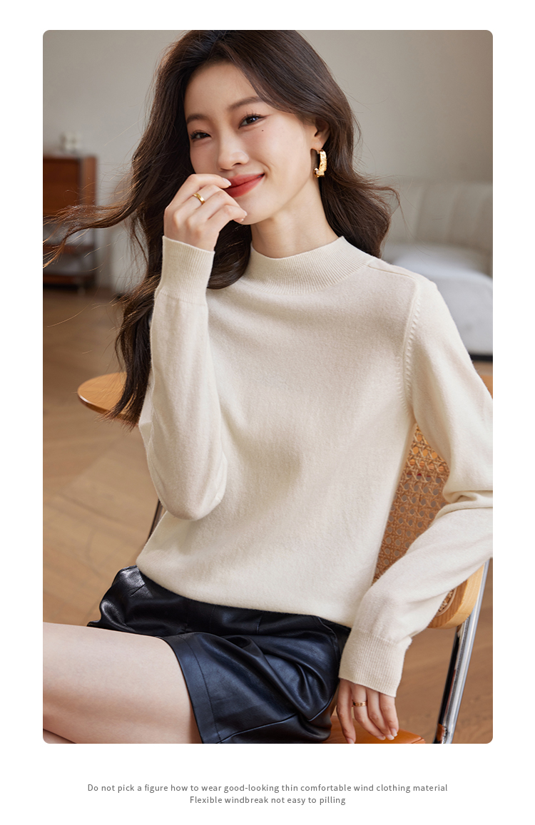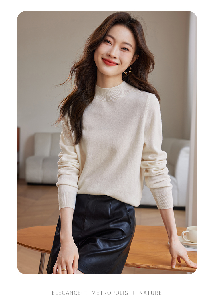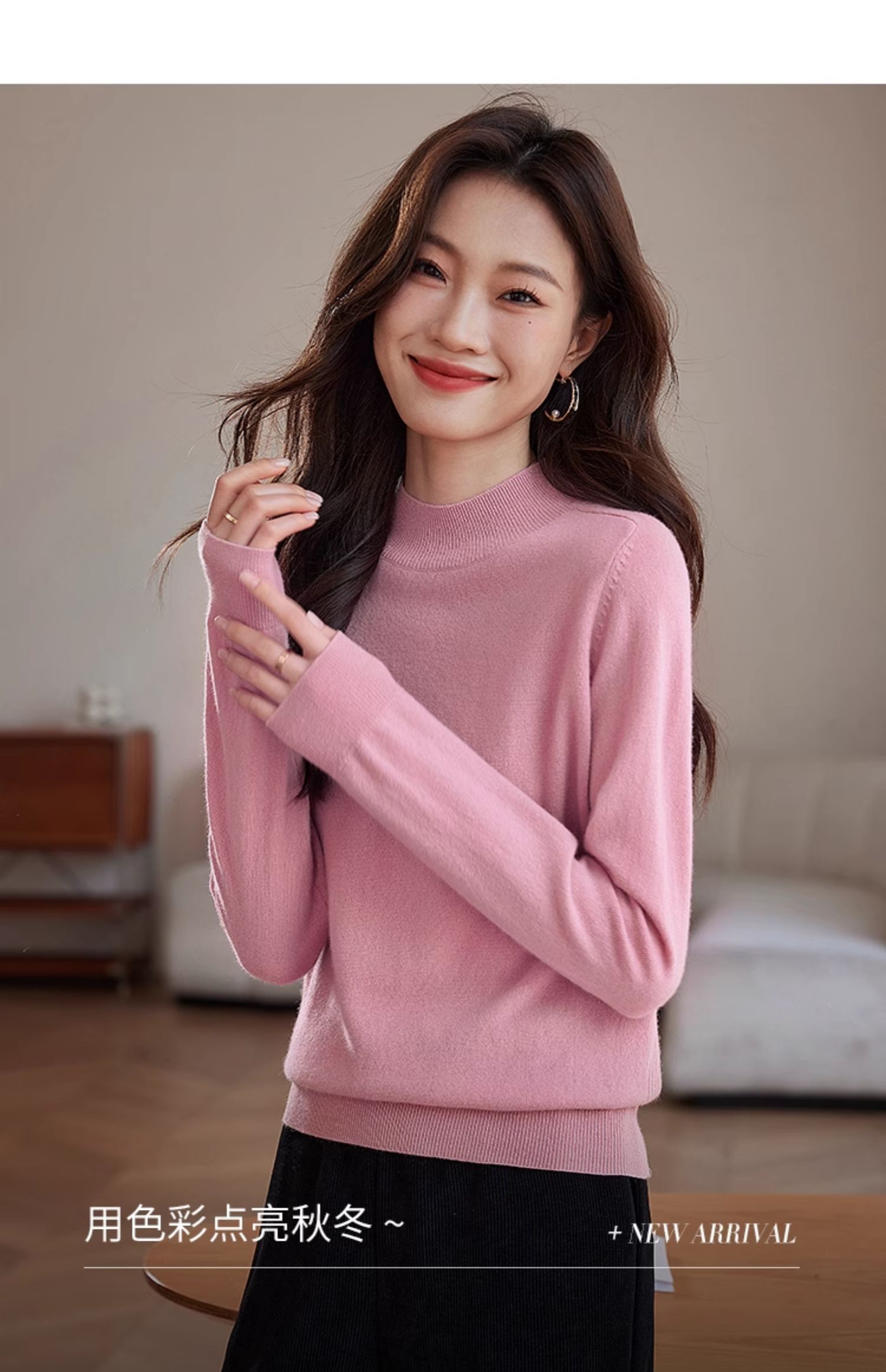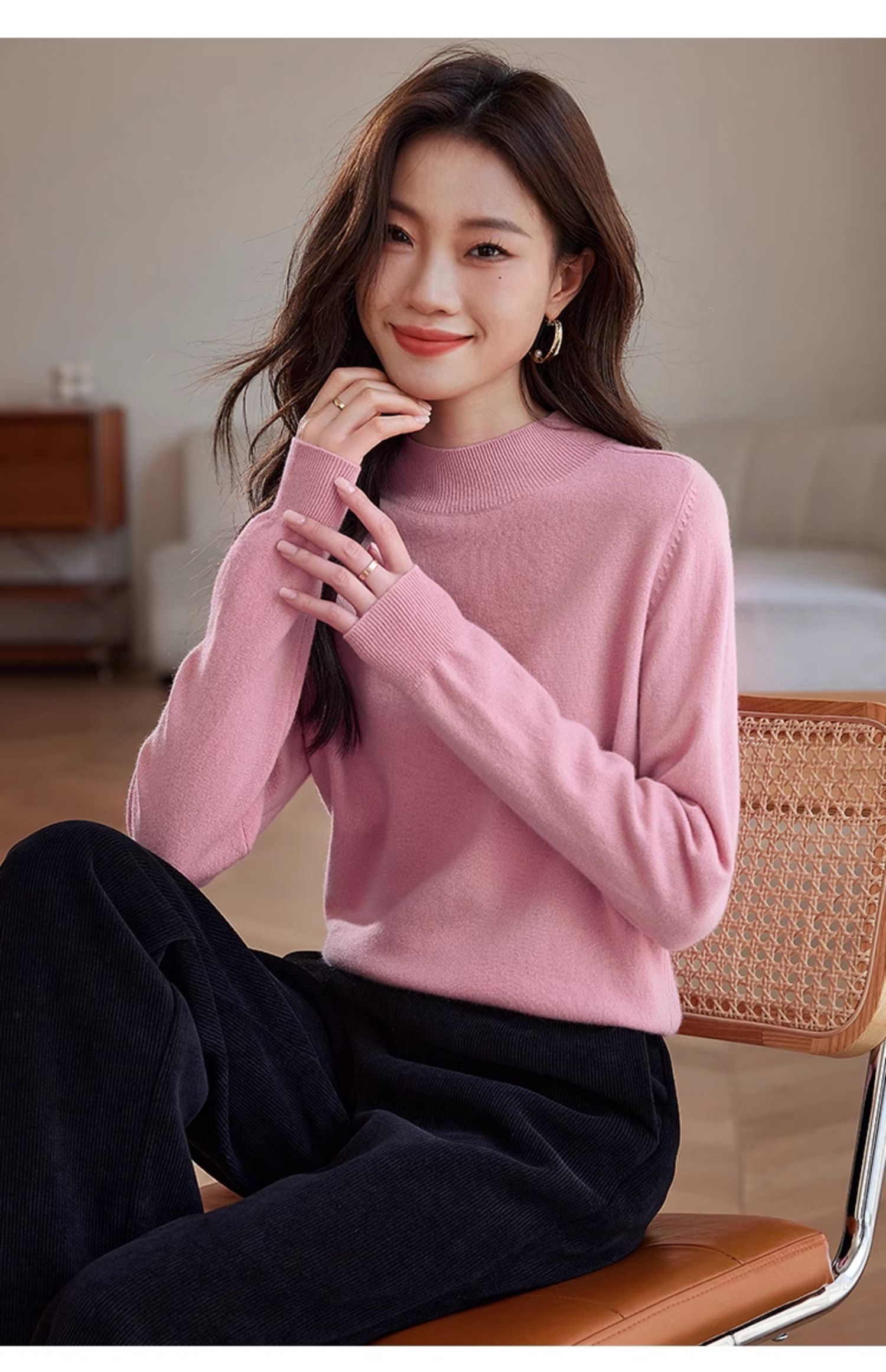 【年货节】熙世界红色100%纯羊毛衫女秋冬款半高领毛衣宽松羊绒针织打底衫