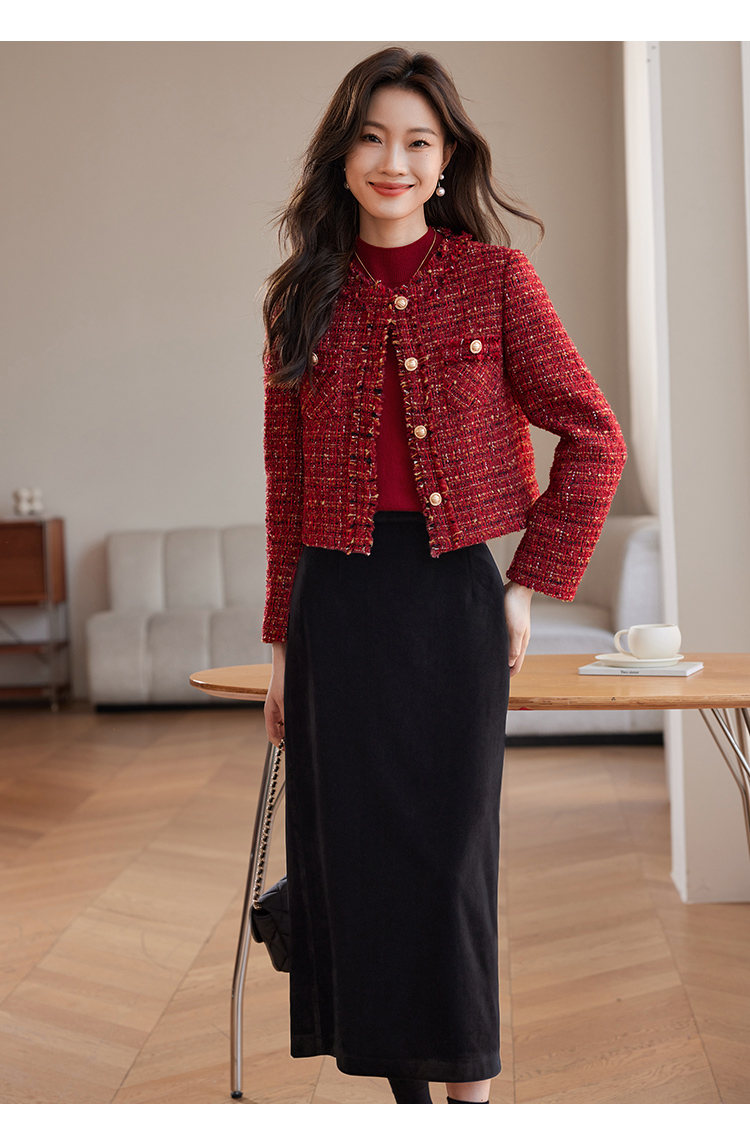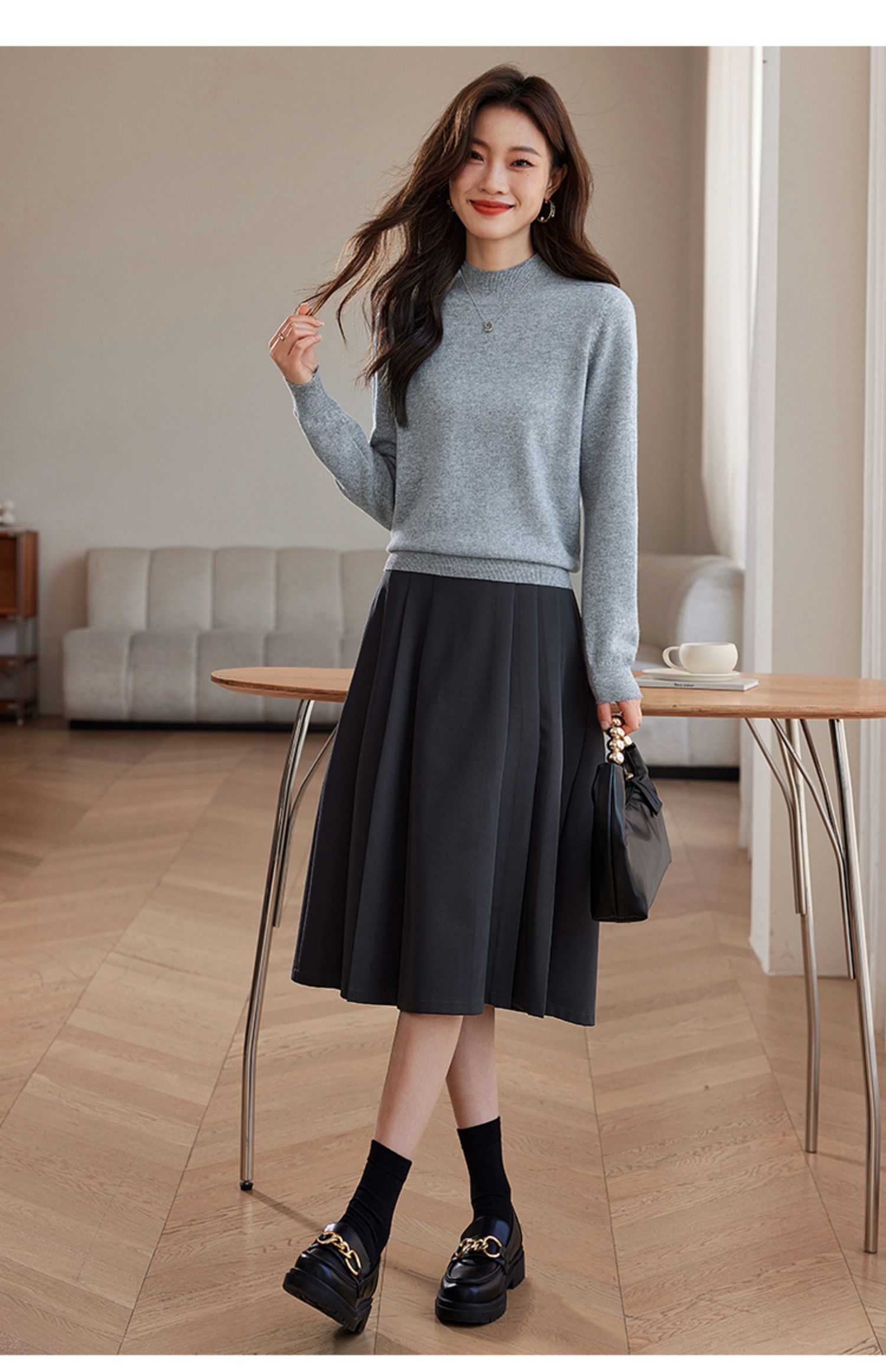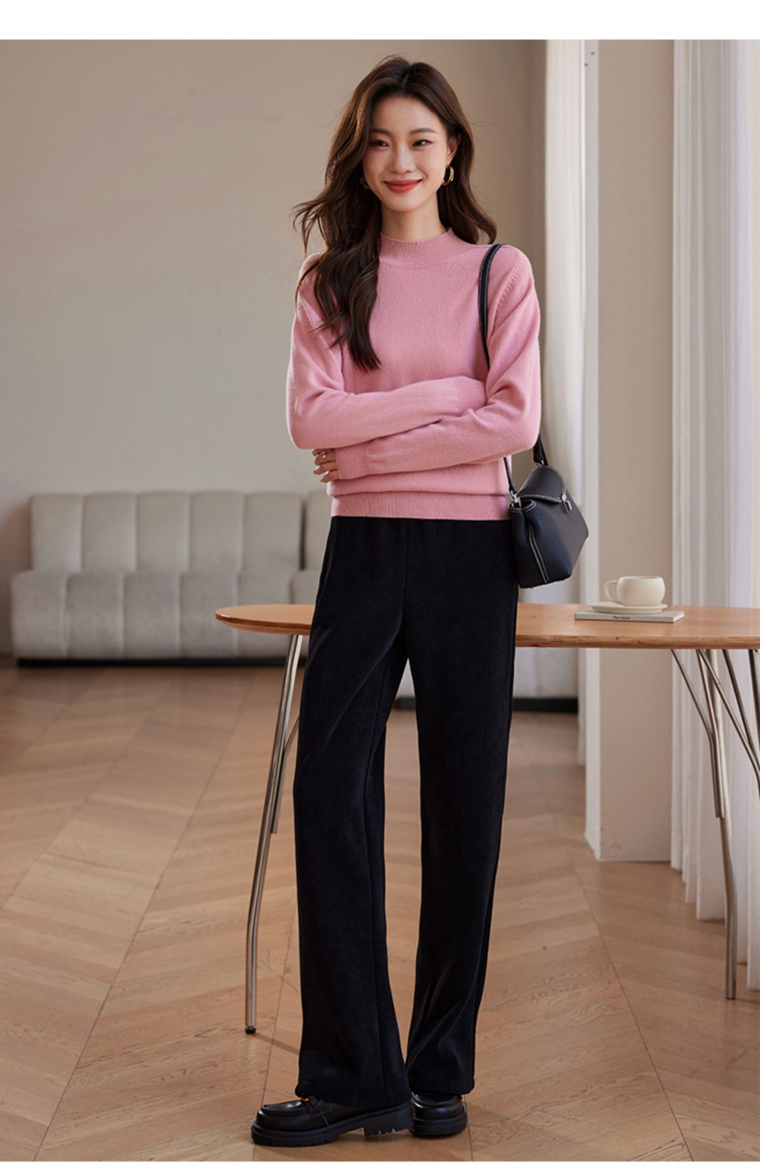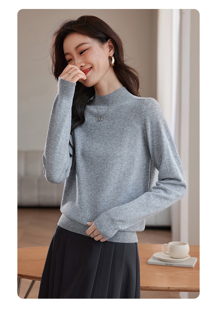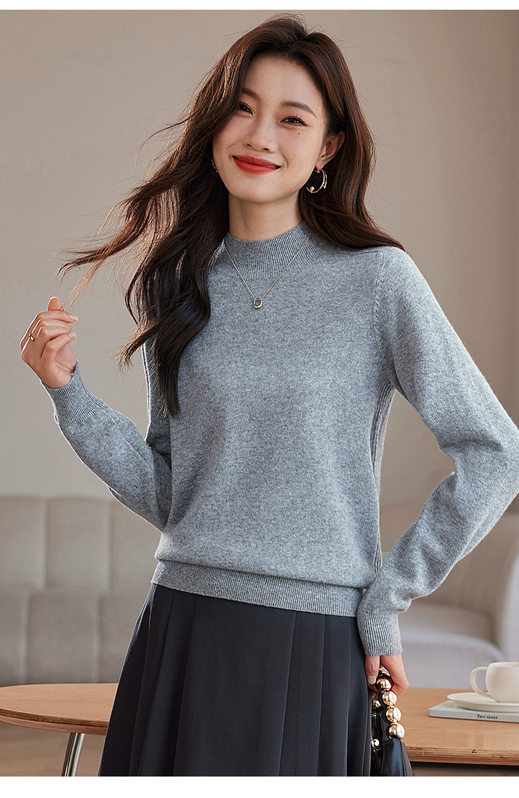 【年货节】熙世界红色100%纯羊毛衫女秋冬款半高领毛衣宽松羊绒针织打底衫