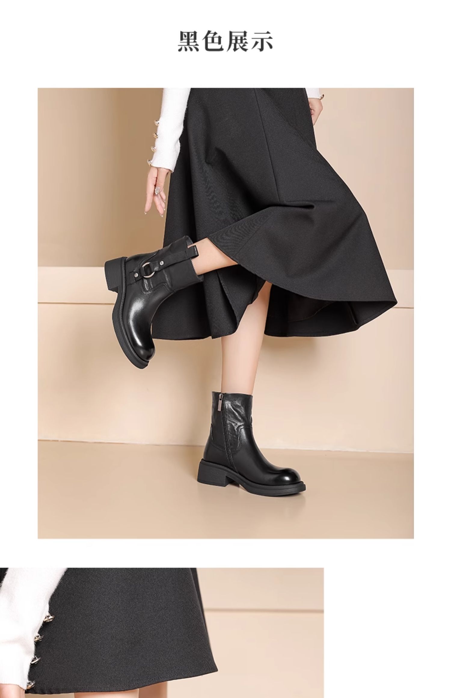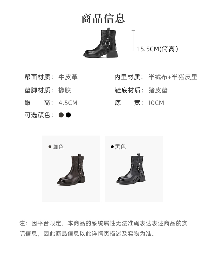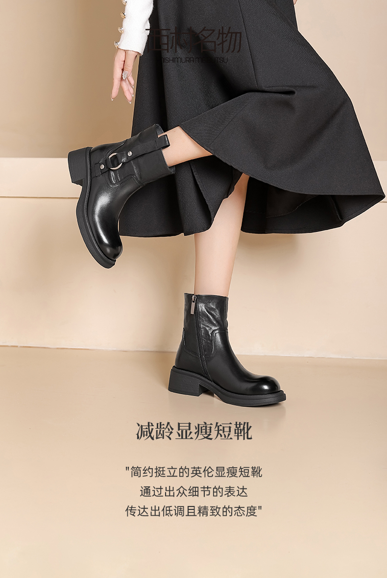 西村名物新款减龄显瘦短靴2024冬季新款英伦风圆头粗跟短靴X24DS47621