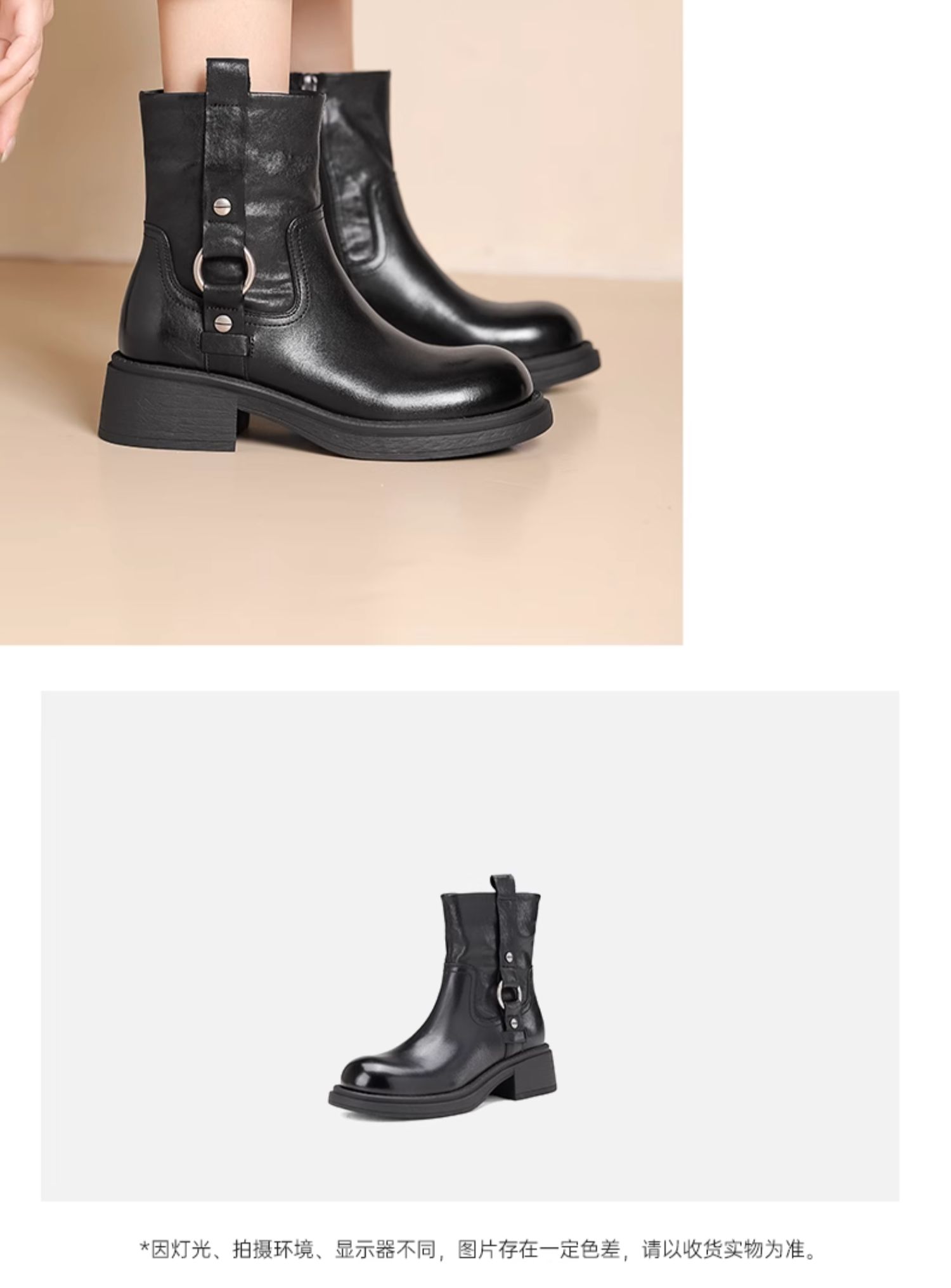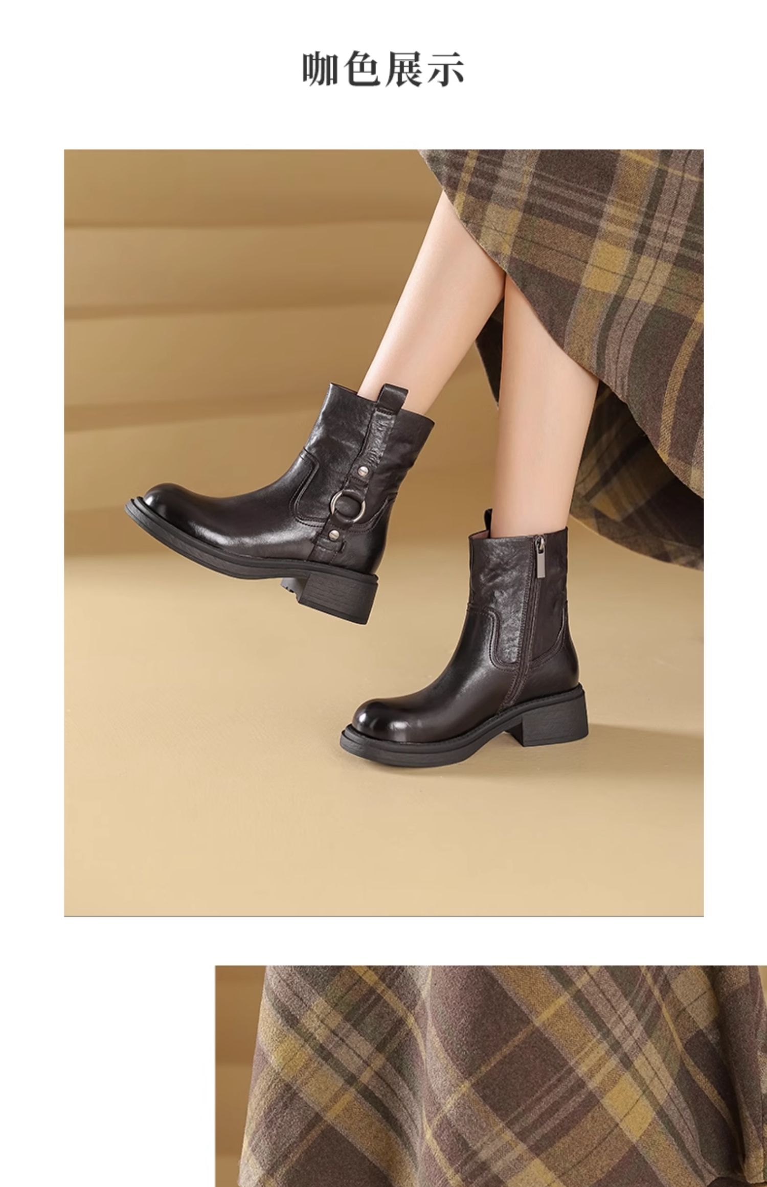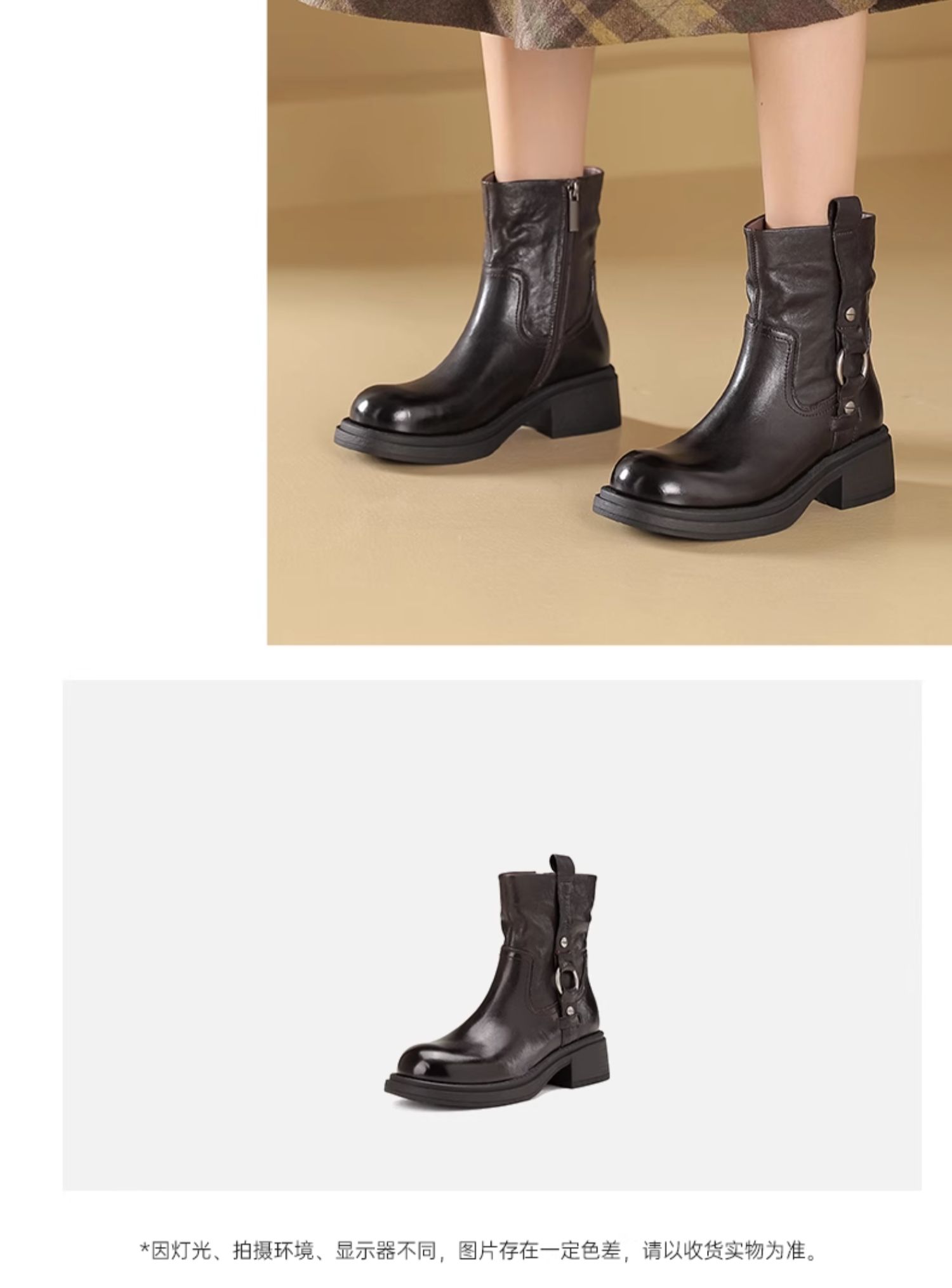 西村名物新款减龄显瘦短靴2024冬季新款英伦风圆头粗跟短靴X24DS47621