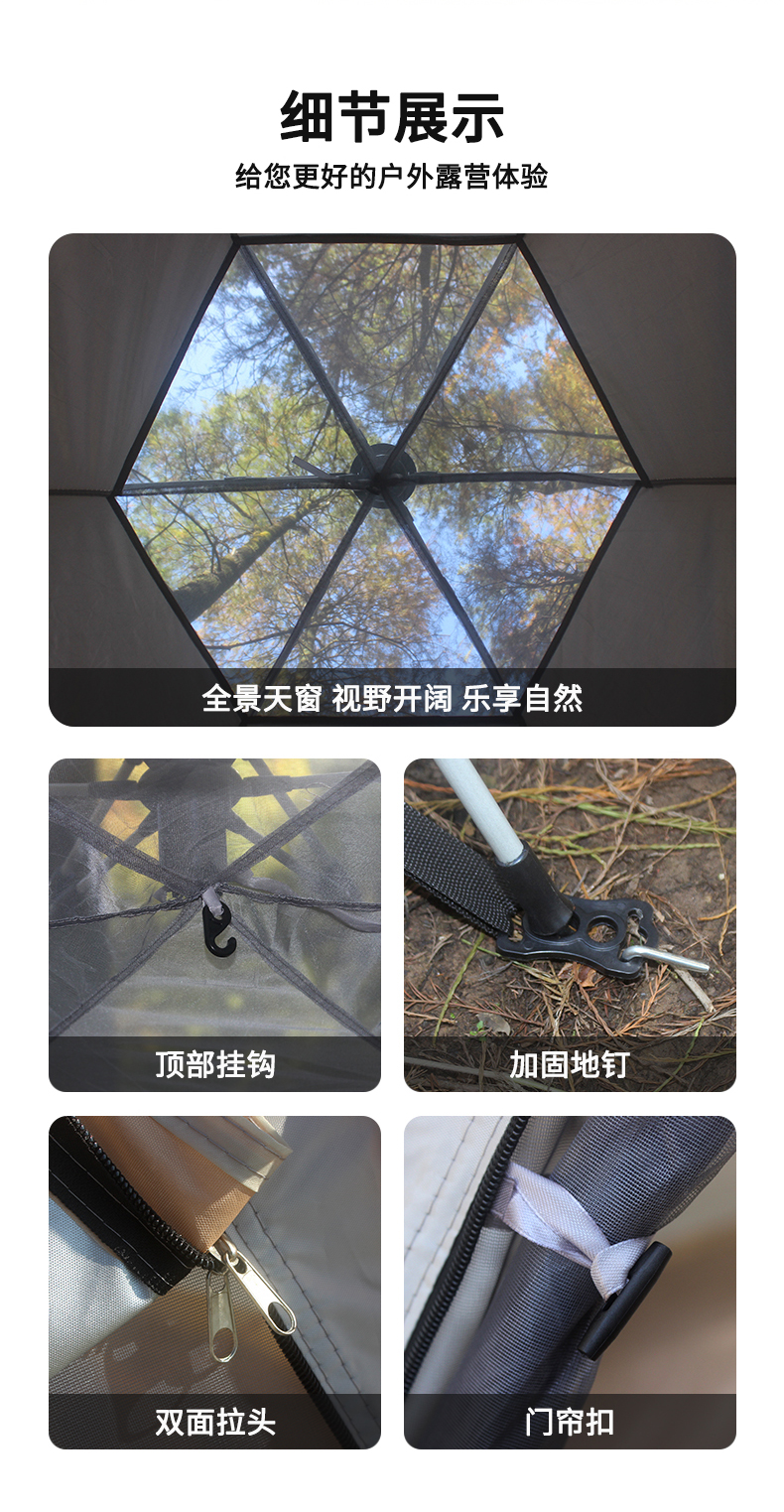 【凯速六角全自动速开帐篷+六角铝膜防潮垫】银胶防晒涂层 阻隔紫外线 两门四窗 通风透气