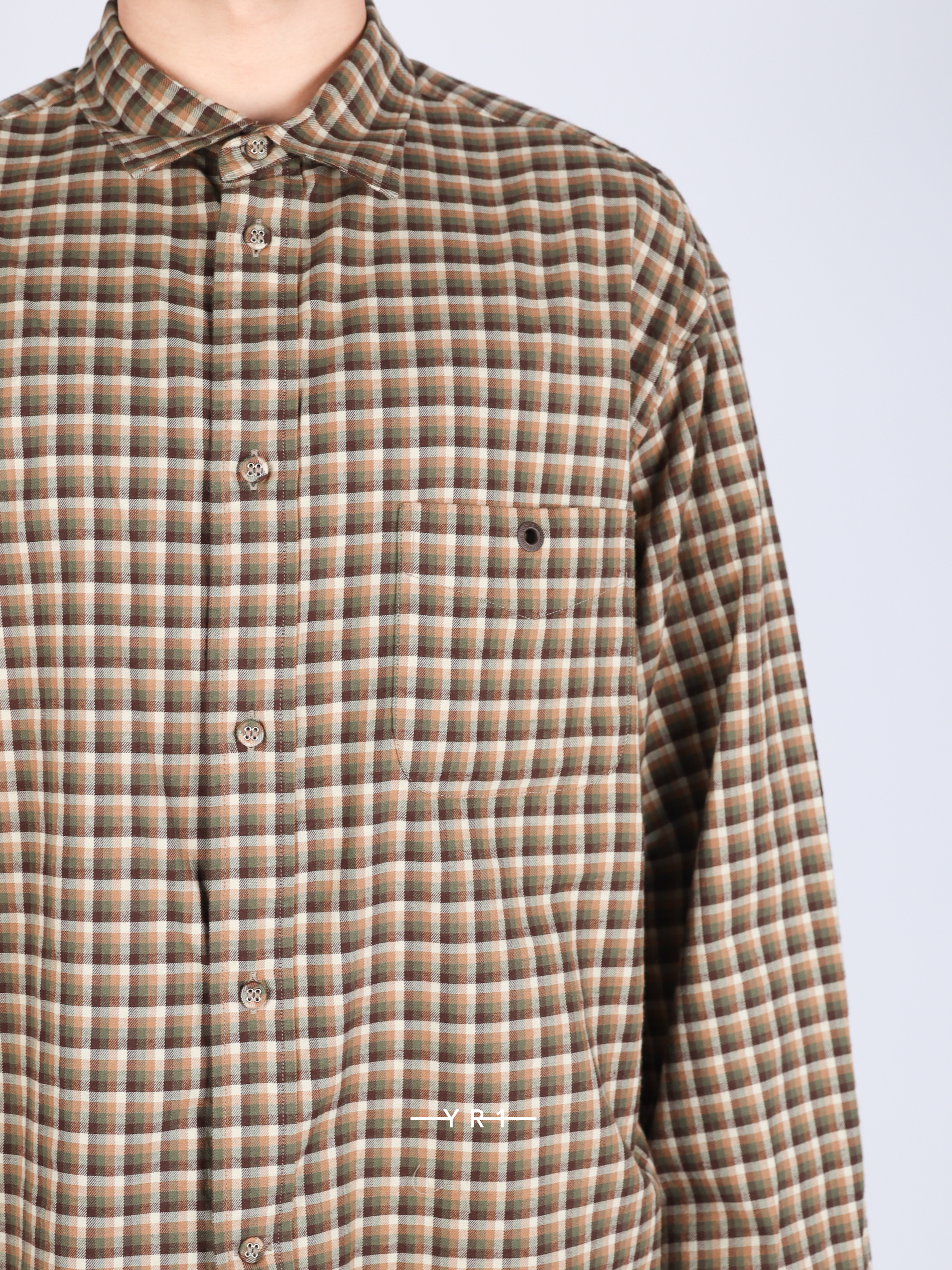 这款格纹衬衫采用带孔眼的贴袋设计,