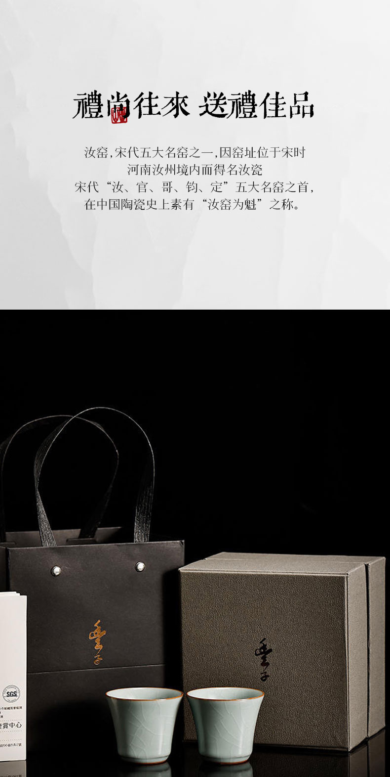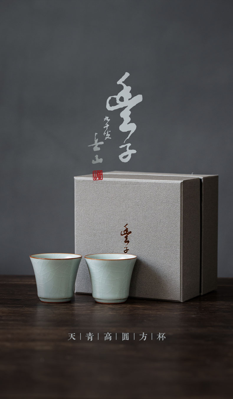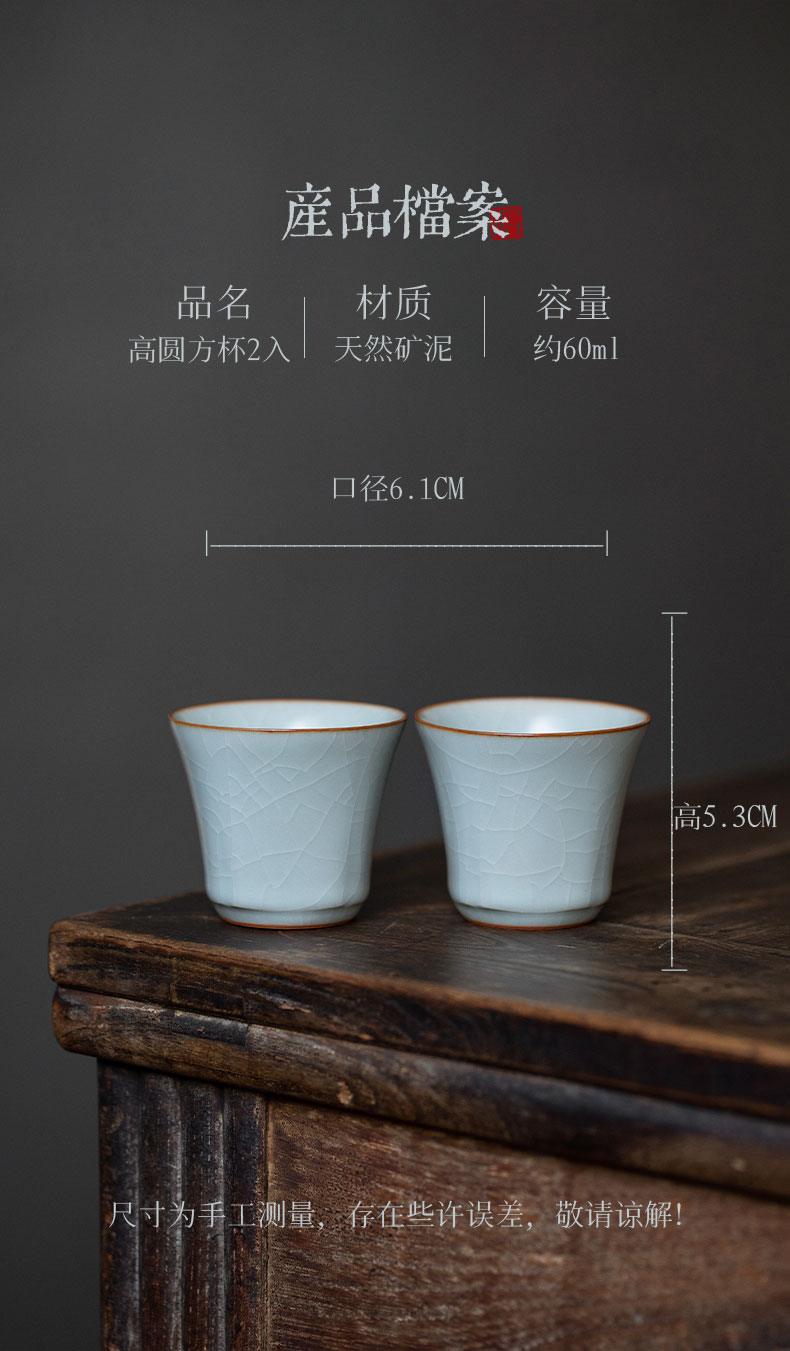 【丰子汝窑】【高圆方杯2入】茶杯手工开片主人杯陶瓷汝瓷单杯子个人品茗杯功夫茶具