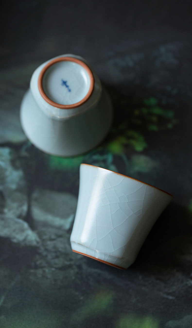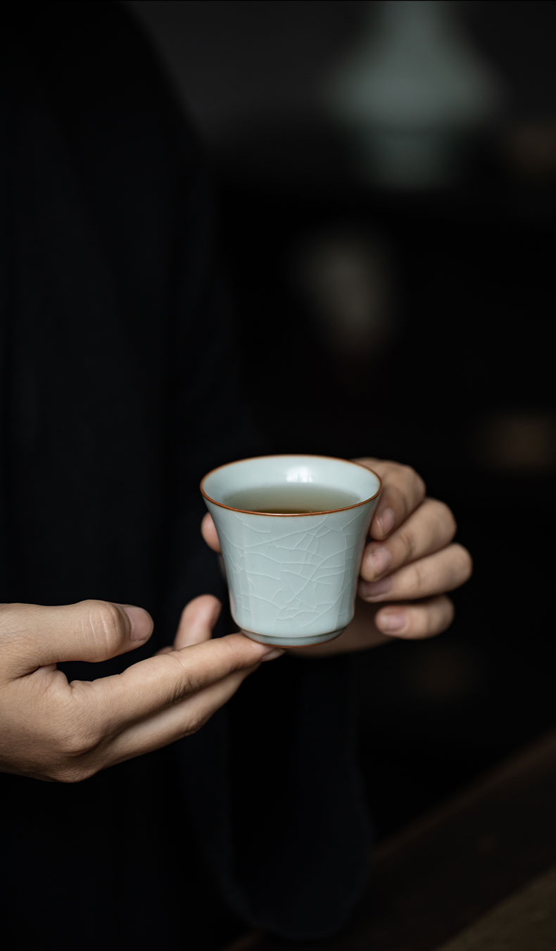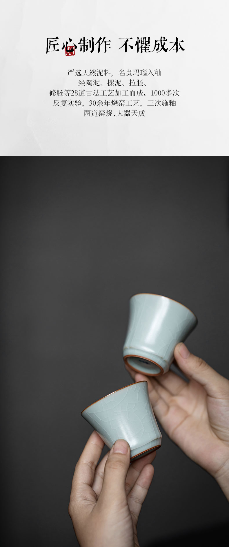 【丰子汝窑】【高圆方杯2入】茶杯手工开片主人杯陶瓷汝瓷单杯子个人品茗杯功夫茶具