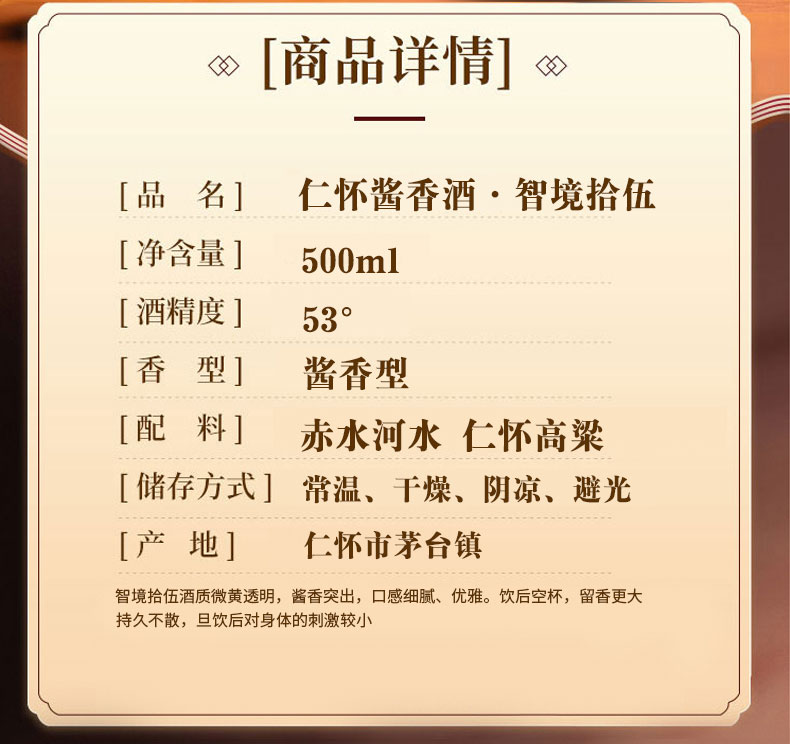 仁怀酱香酒(智境拾伍) 贵州茅台镇 酱香型白酒 53度 500ml