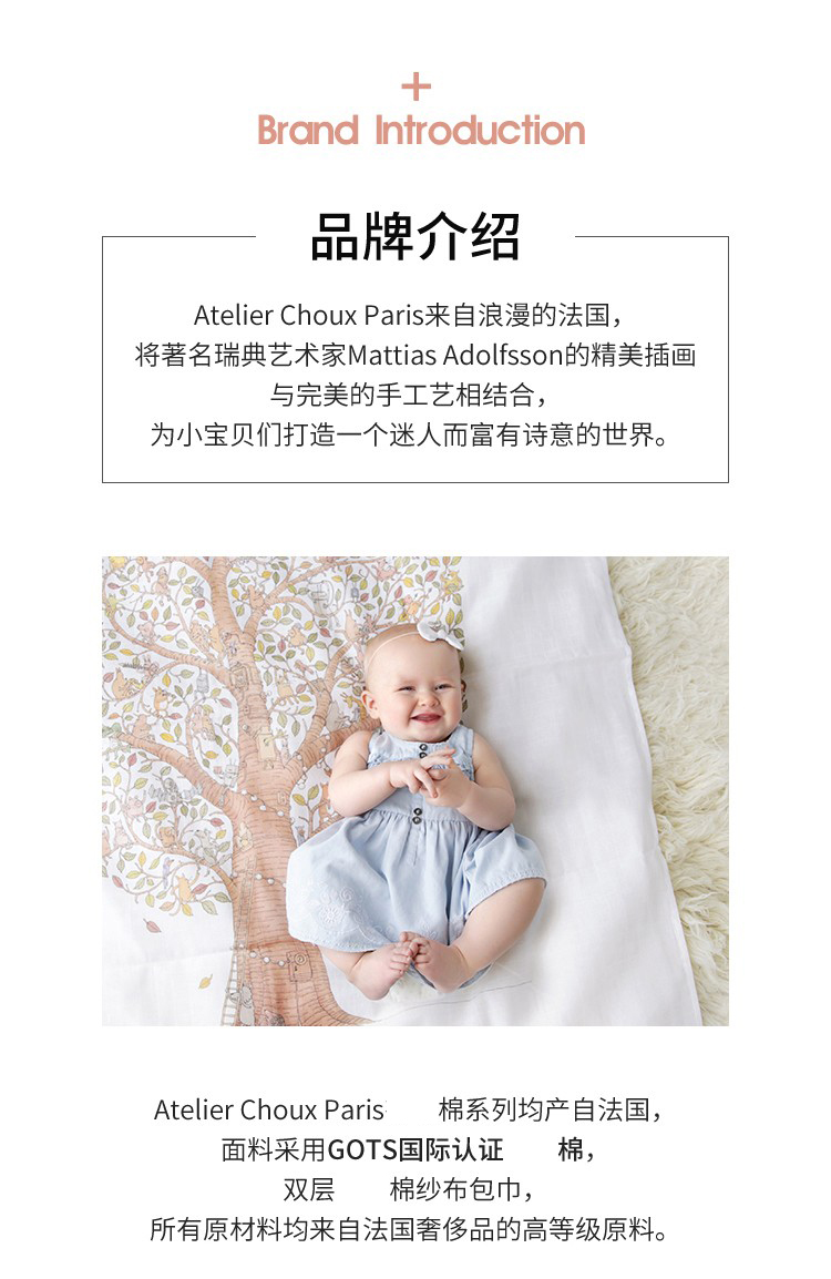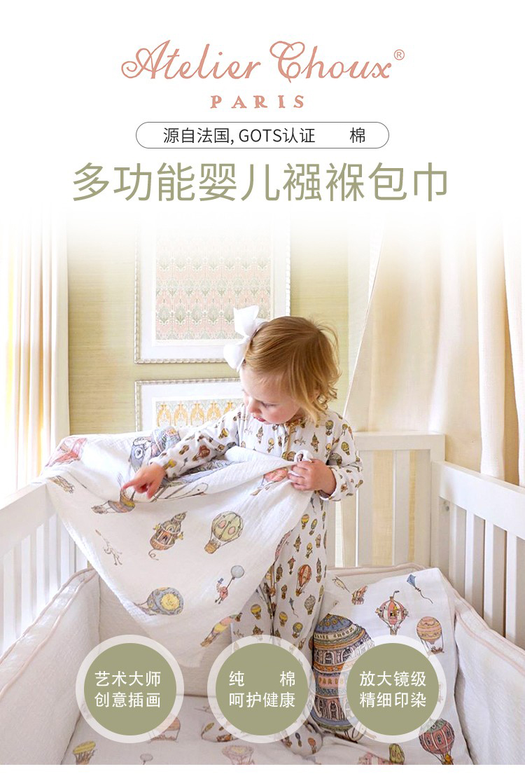 法国Atelier Choux 婴儿棉纱布包巾抱巾 枕头床笠被套包巾