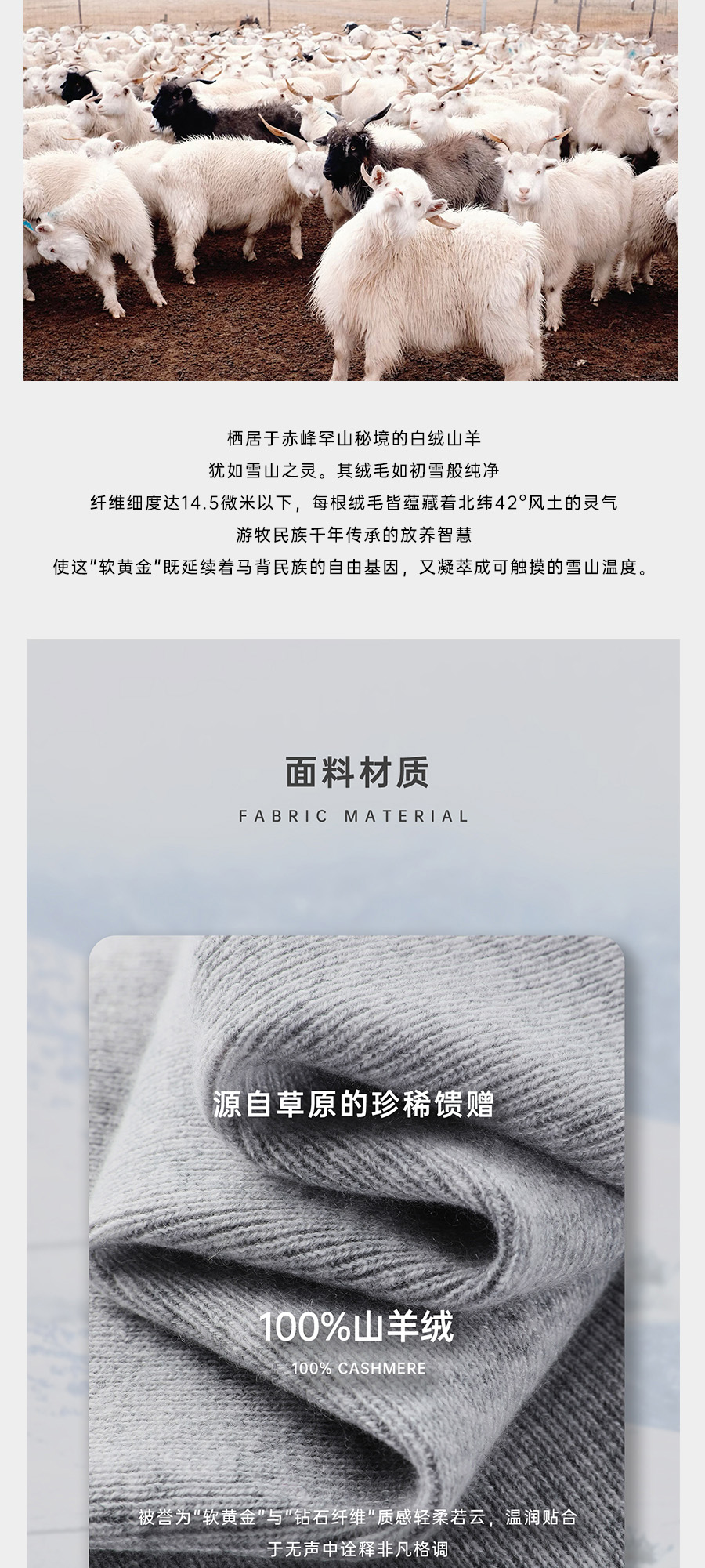 东黎羊绒是赤峰东荣集团自主品牌,自有牧场/羊绒制品全产业链优势,实现了羊绒从“牧场”到“商场”的华丽转变。