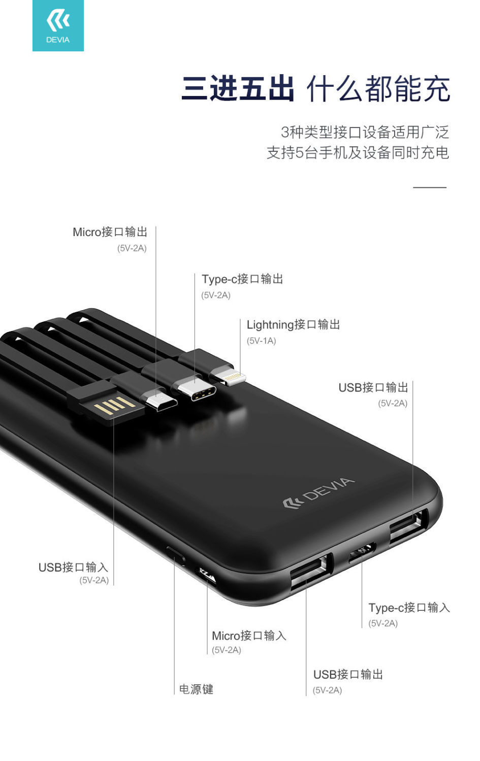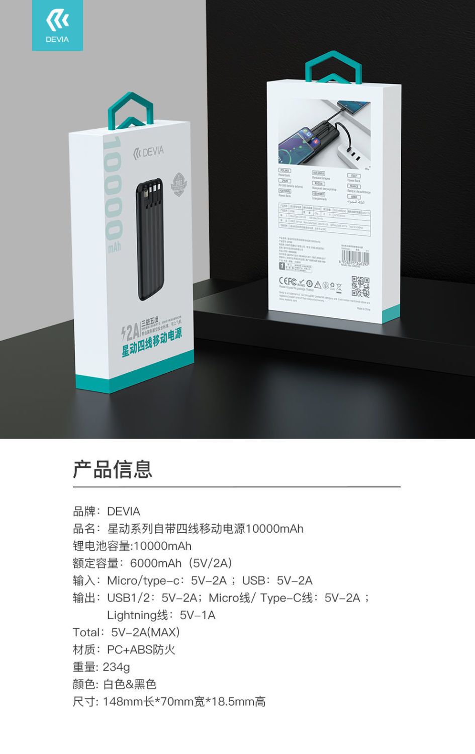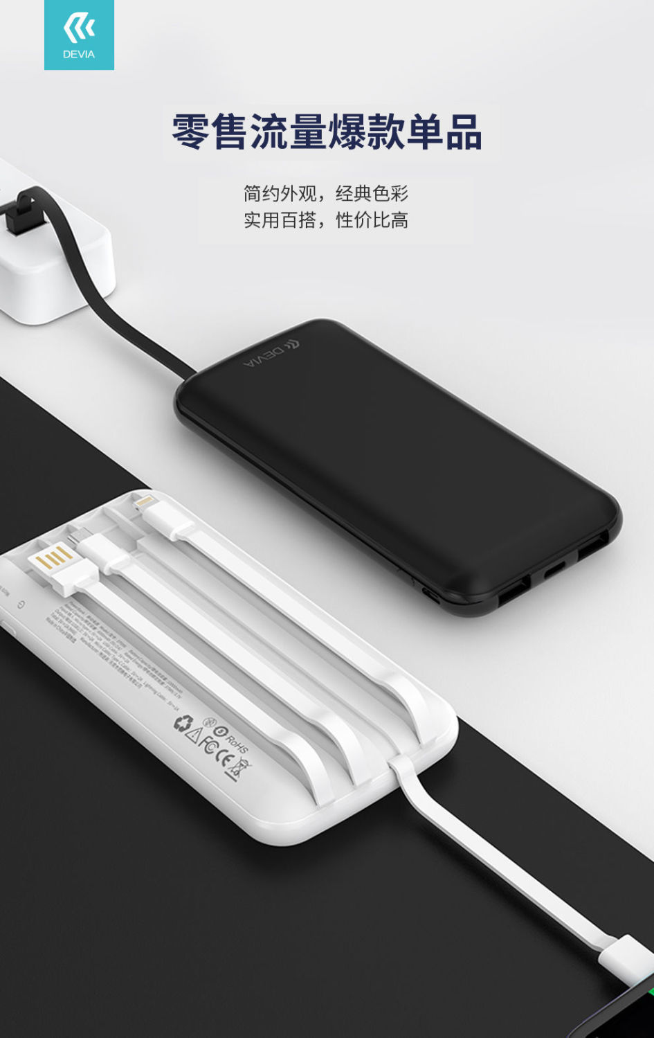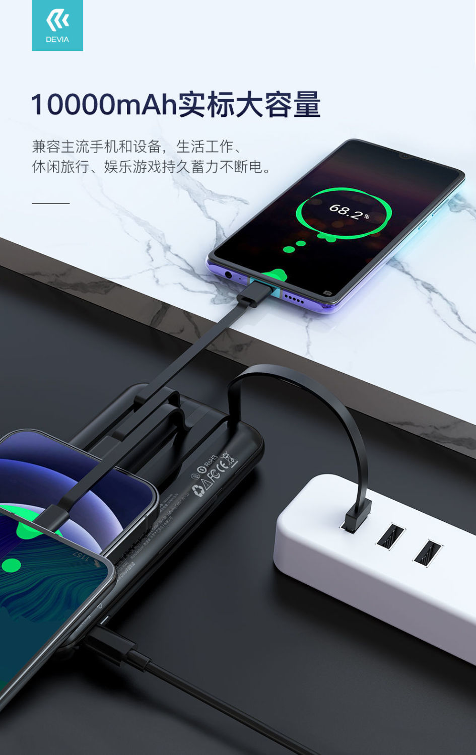 【限时秒杀】迪沃星动自带四线移动电源10000mAh充电宝
