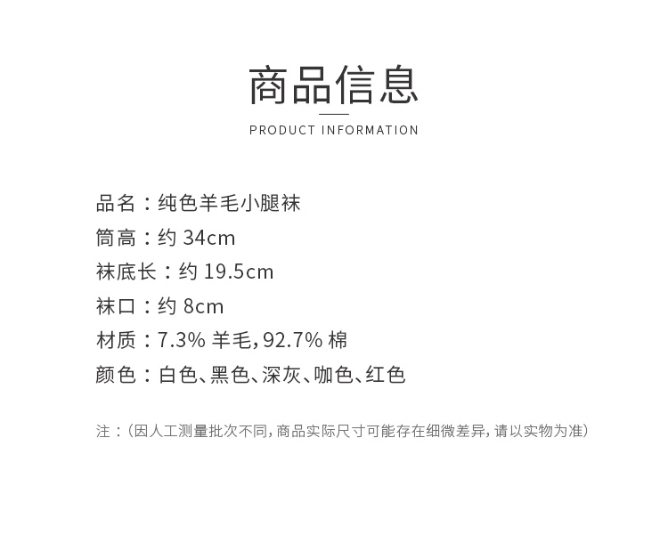 可可推荐 学院风~纯色羊毛小腿袜 微压显瘦|修饰腿型 舒适保暖 简约时尚