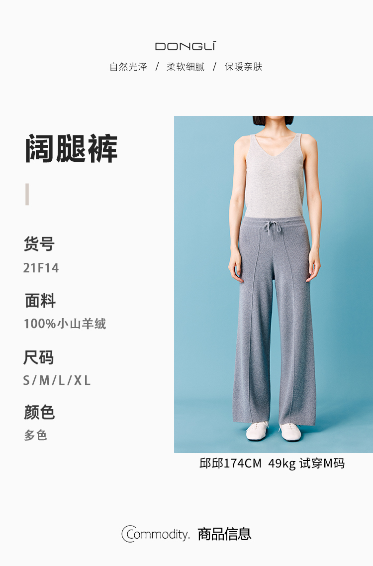 东黎 • 小山羊绒女士秋冬抽条宽松阔腿裤 21F14