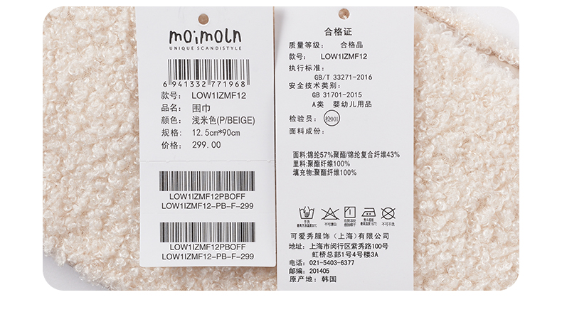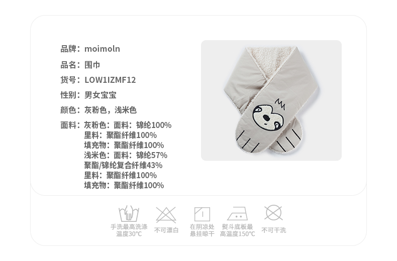 moimoln小云朵男女宝宝围巾经典卡通动物刺绣设计秋冬保暖围脖LOW1IZMF12