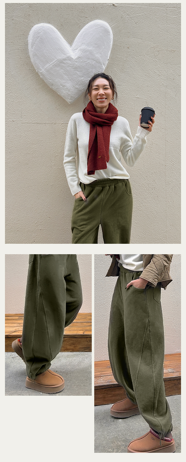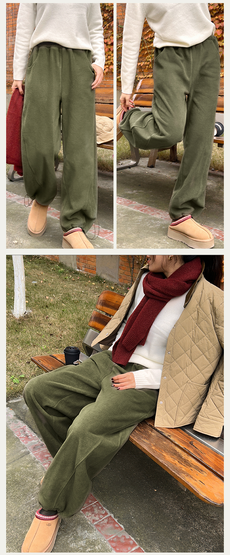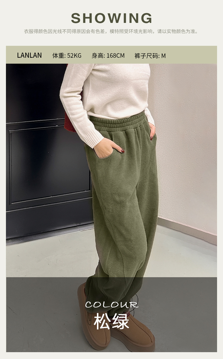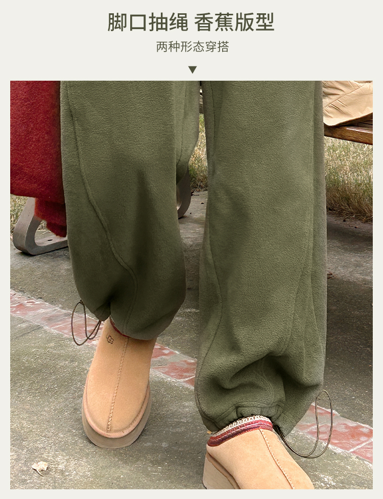 [320克双面摇粒绒] 中腰显瘦香蕉裤 脚口抽绳阔腿裤 一裤两穿 锁温御寒