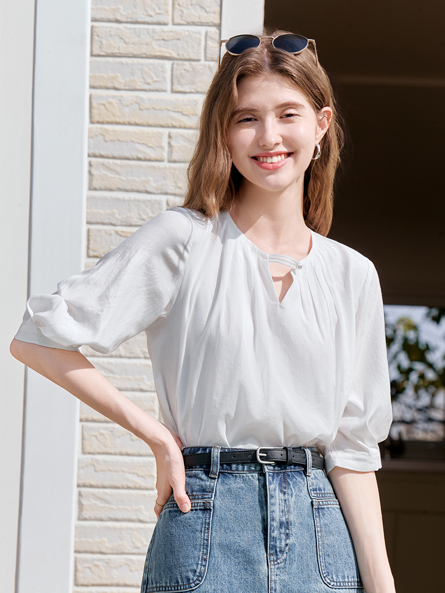 面料:白色:52.4%聚酯纤维 47.6%粘胶纤维(粘纤)