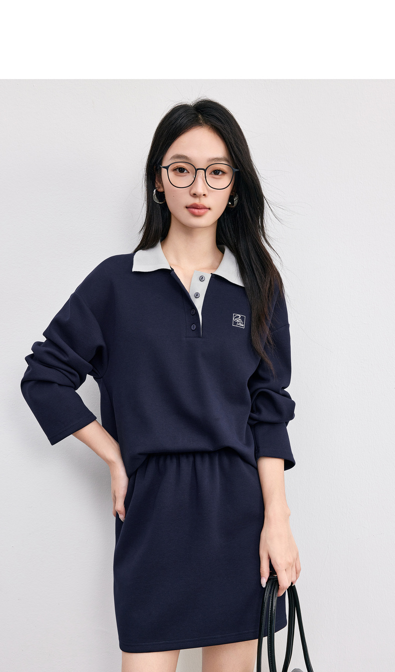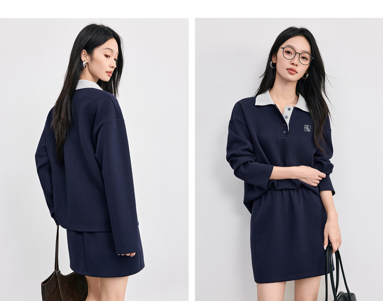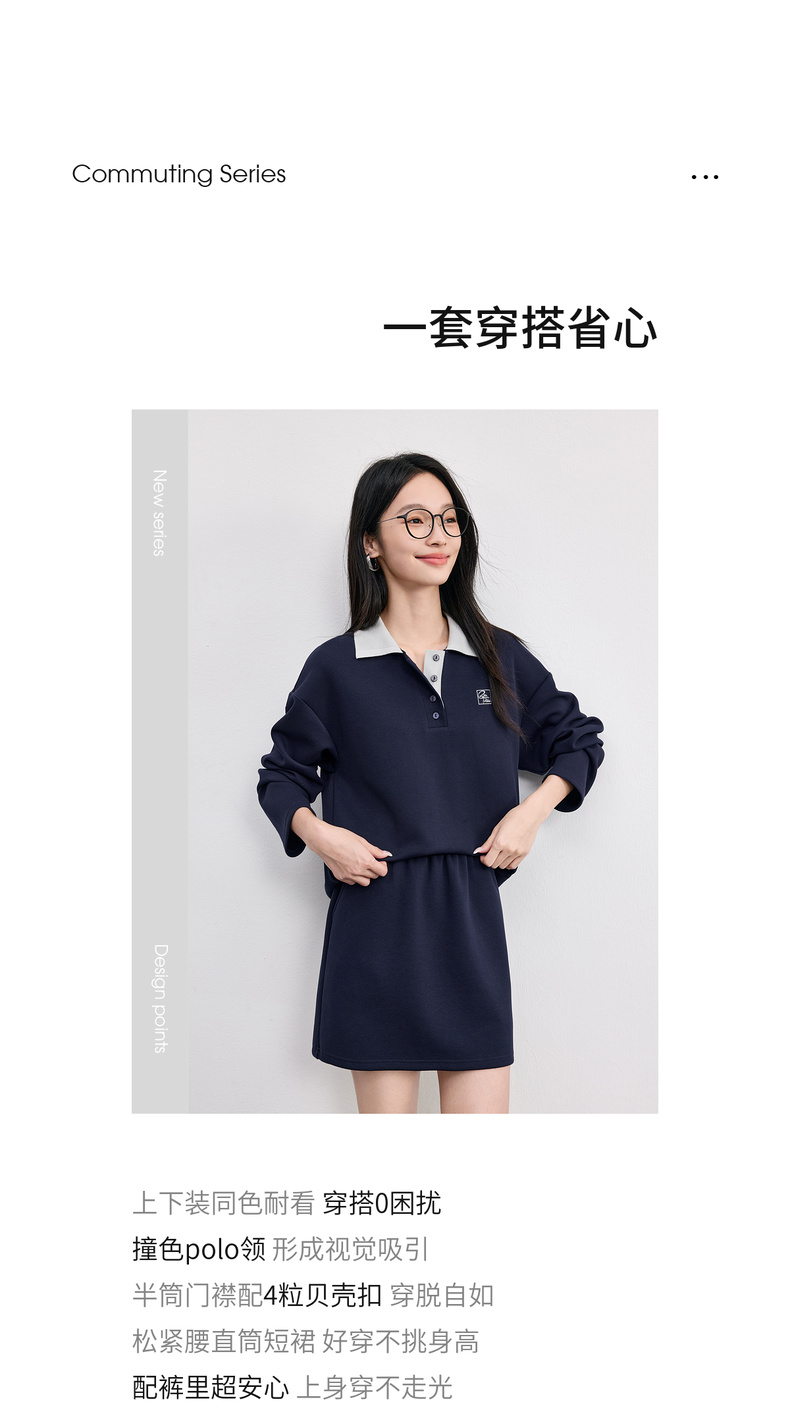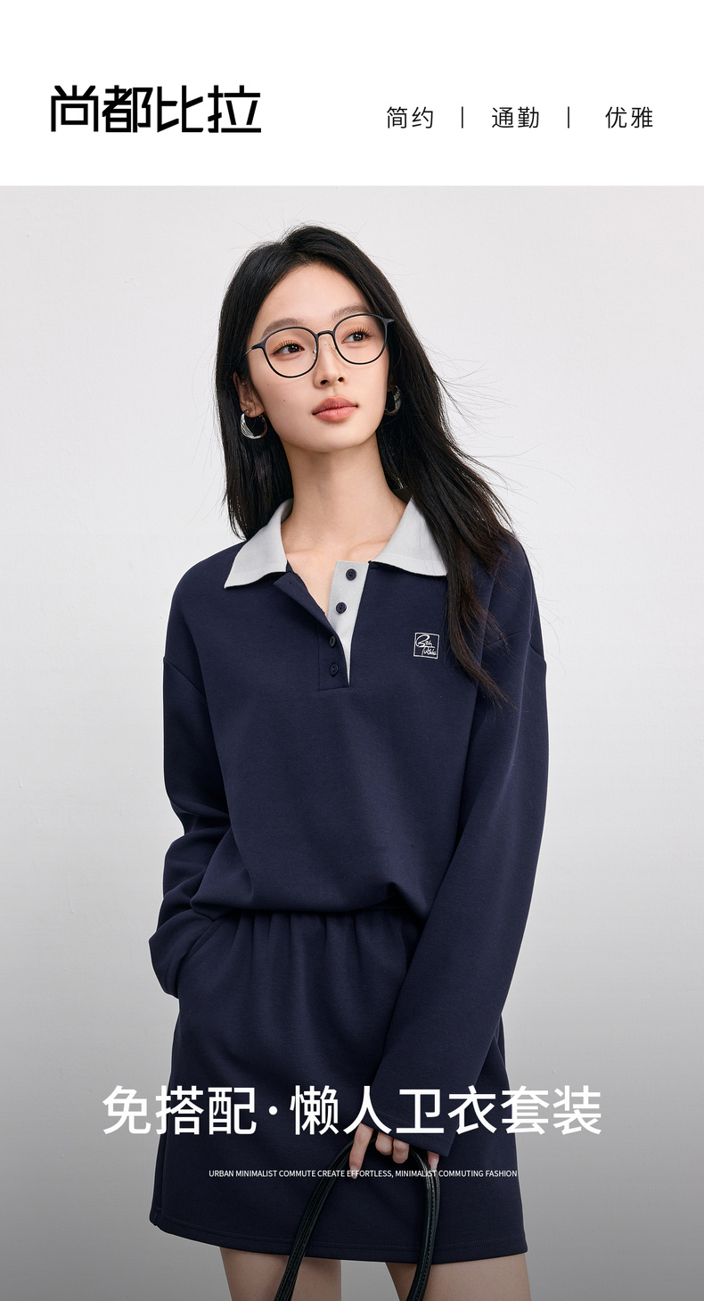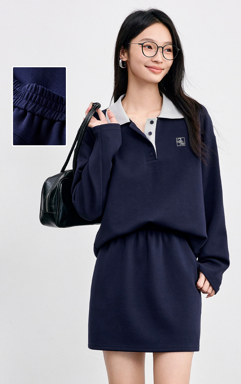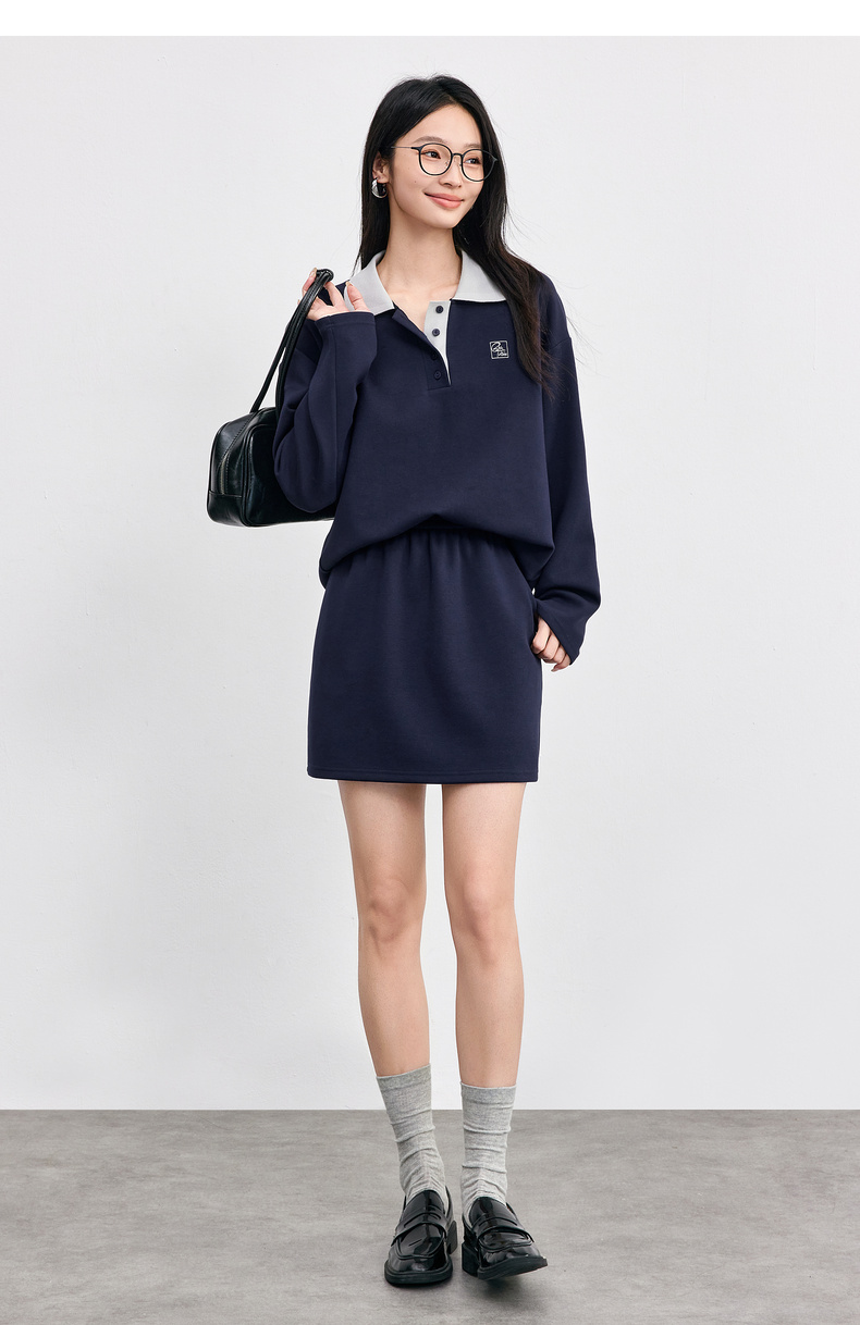 【内购】【懒人套装】简约通勤撞色宽松落肩长袖卫衣&松紧腰不走光短裙-153ZH2492