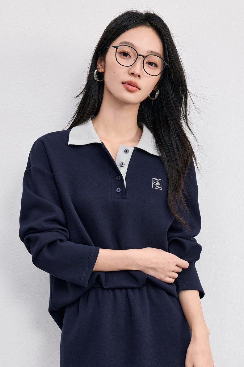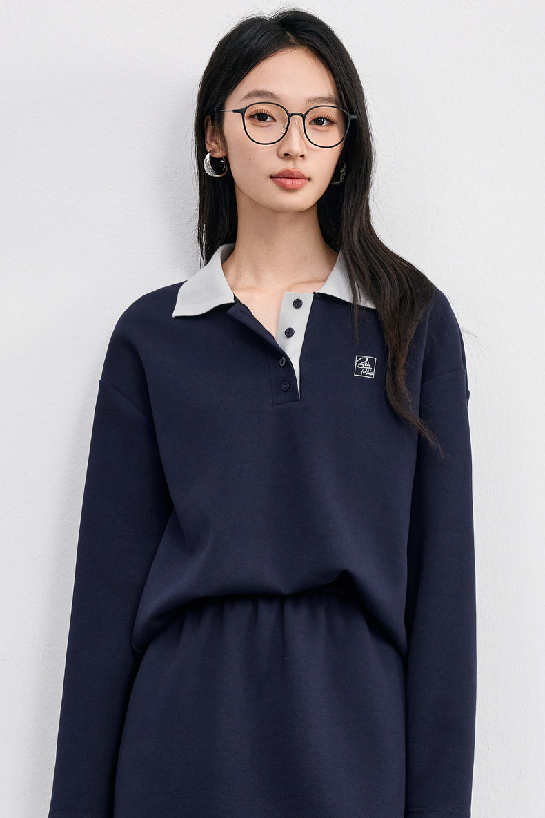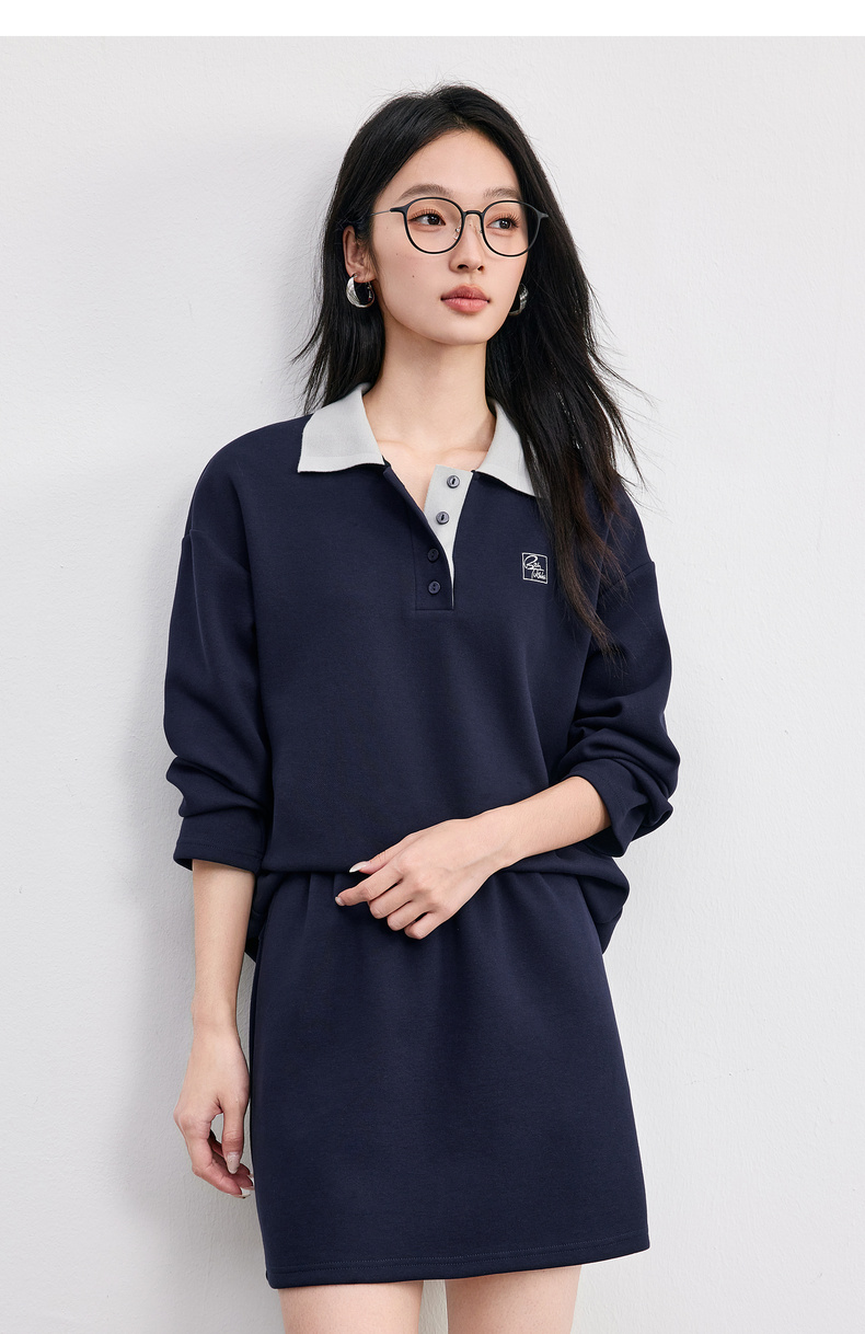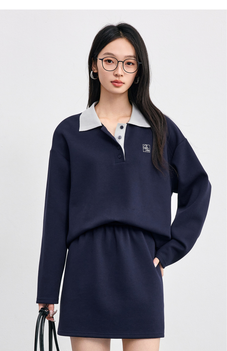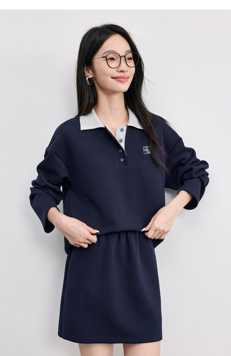 【内购】【懒人套装】简约通勤撞色宽松落肩长袖卫衣&松紧腰不走光短裙-153ZH2492