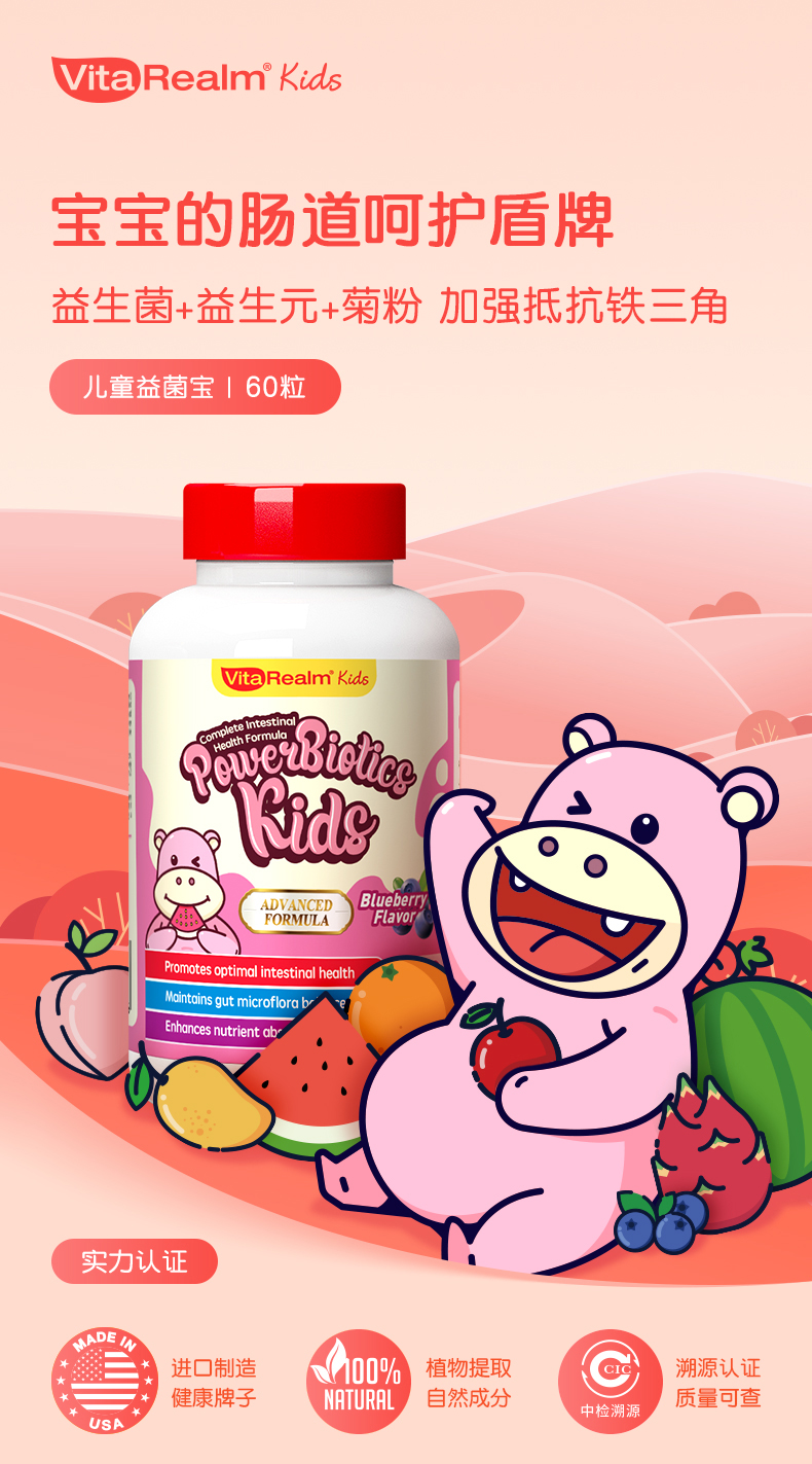 新加坡VitaRealm维乐原儿童肠胃益生菌咀嚼片60粒/盒