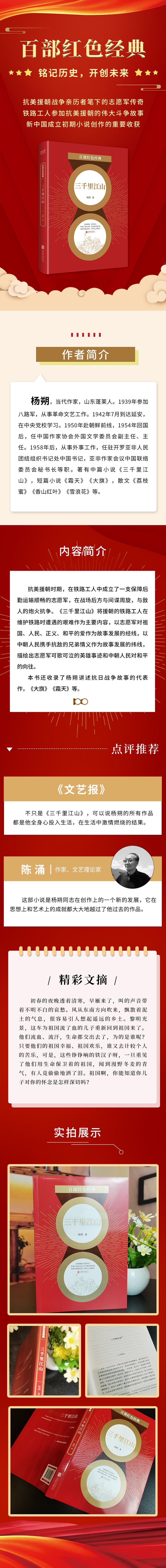 ★本书收录了杨朔讲述抗日战争故事的代表作,《月黑夜》《大旗》《霜天》《火并》等。★从炮火中凝聚思想,从生活中收集材料,文学大家杨朔书写《三千里江山》,再现中国铁道工人在抗美援朝斗争中的动人故事。★“百部红色经典”系列丛书为献礼建党100周年专门设计,收入作品皆为名家名作,旨在重温红色经典,缅怀先烈,传承革命精神,弘扬爱国主义。