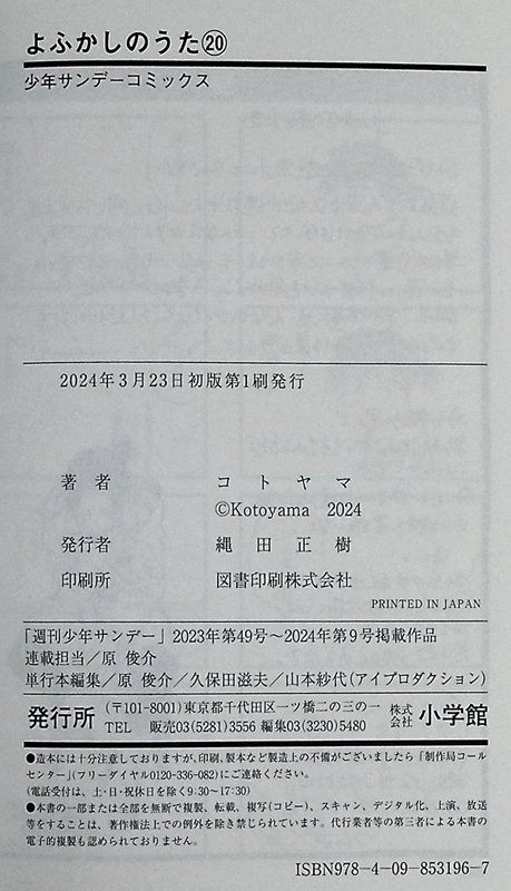 【中商原版】漫画 彻夜之歌 20 完结卷 琴山 小学馆 日文原版漫画书 よふかしのうた コトヤマ