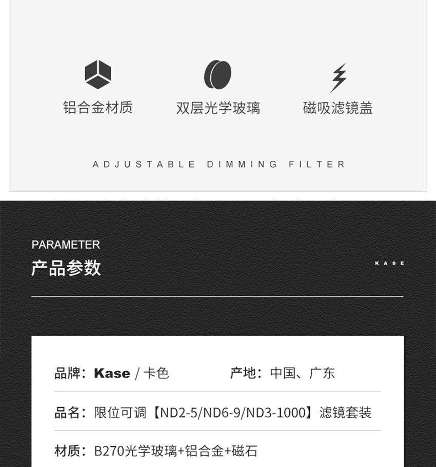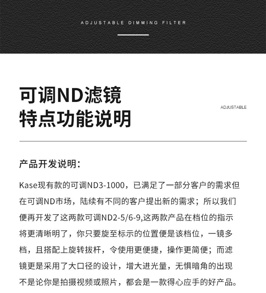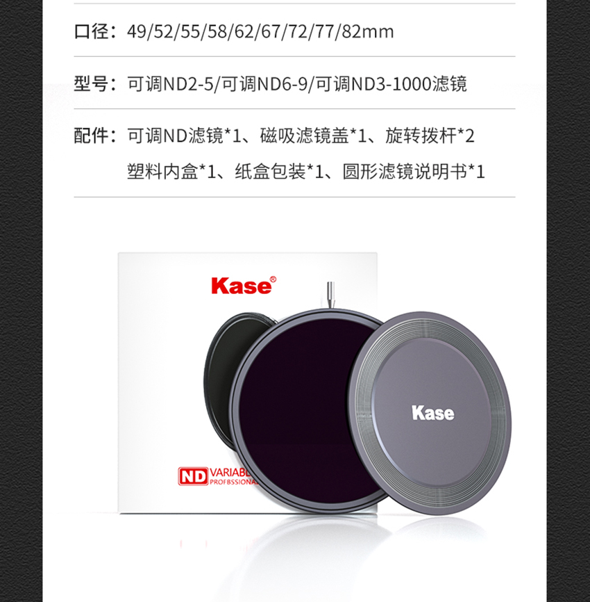 狼族优选丨Kase卡色可调ND减光镜 中灰密度镜 大光圈防曝人像摄像视频拍摄滤镜