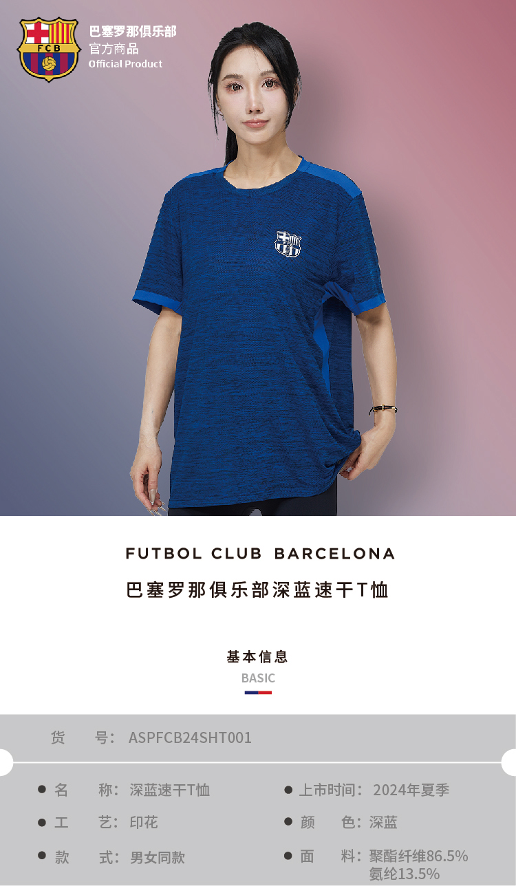 【官方正版】巴塞罗那俱乐部| 深蓝速干T恤运动休闲户外男女通球迷