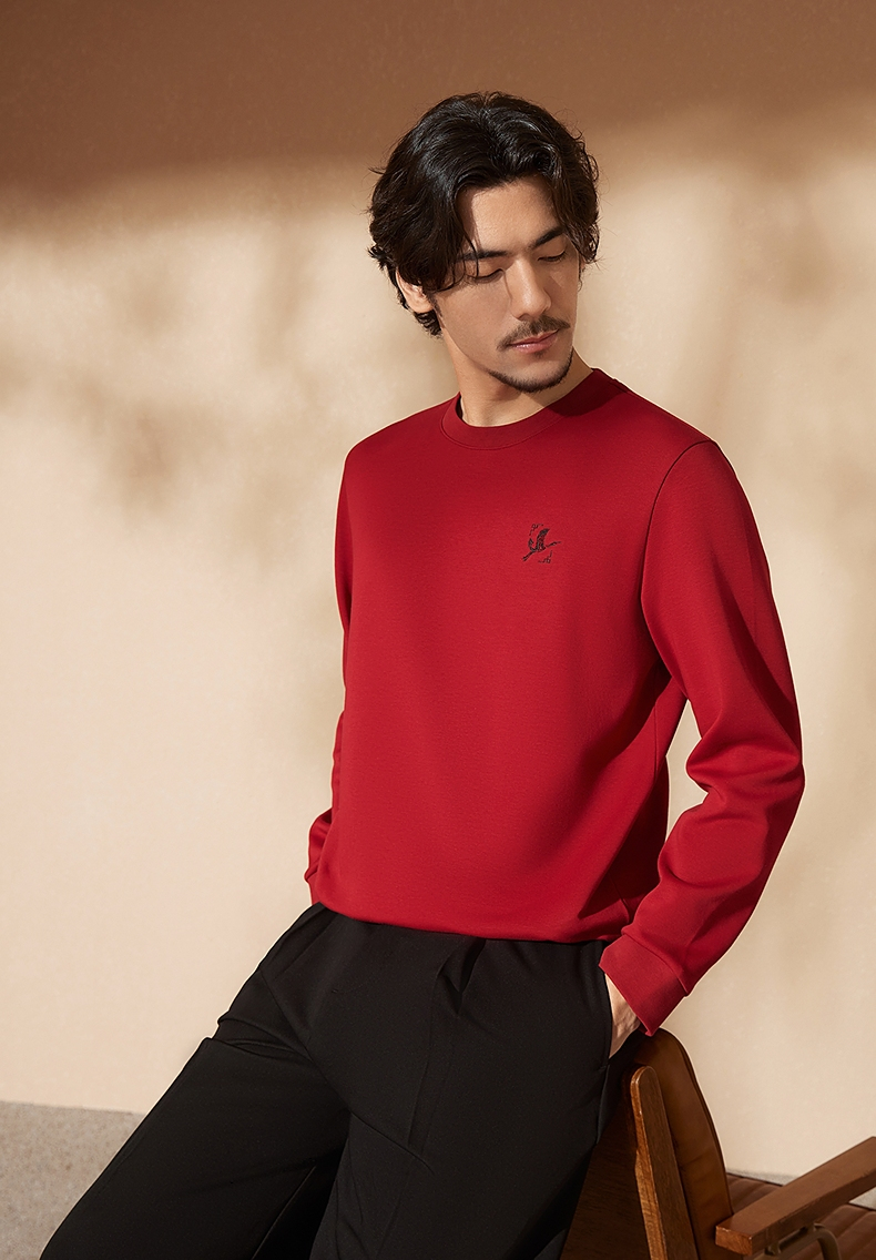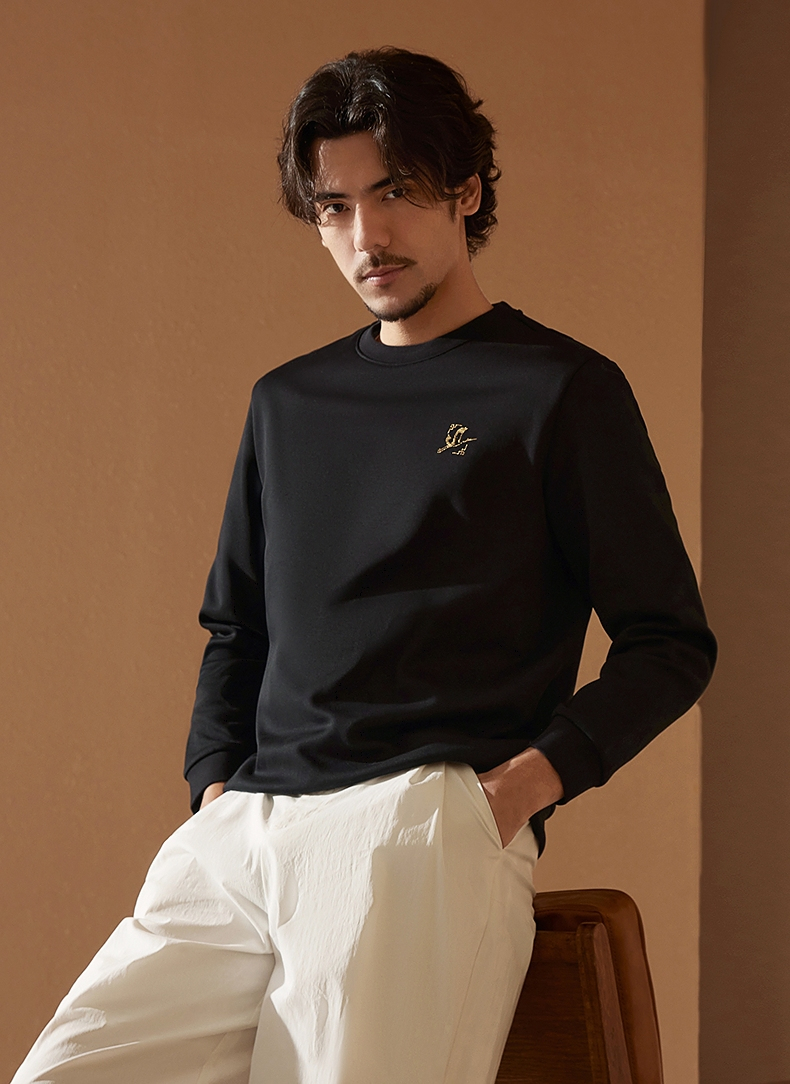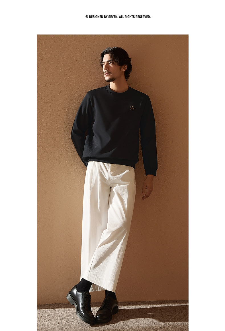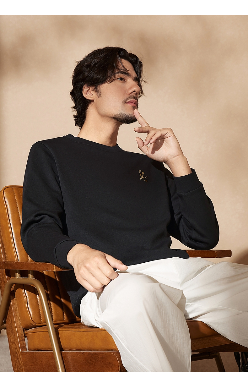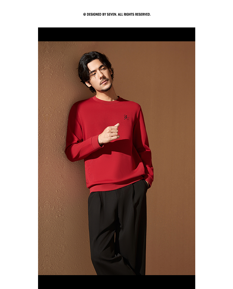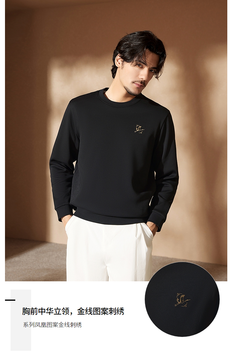 【中华立领】柒牌圆领加绒卫衣男士2024秋冬新款时尚休闲套头上衣 127W70730