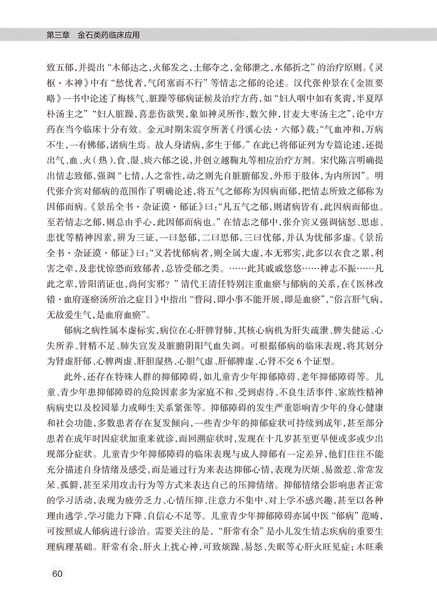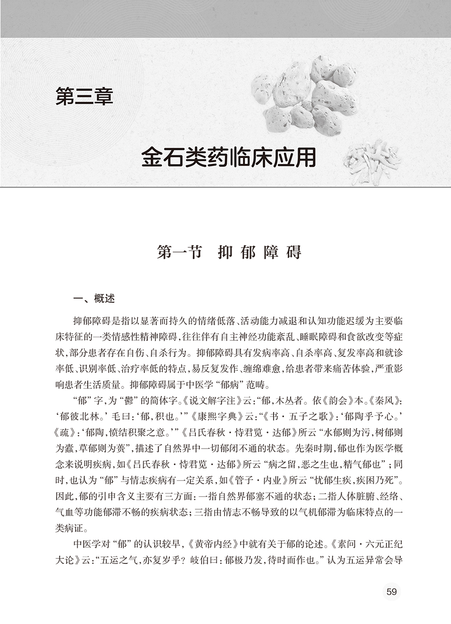 第一章 金石类药调神的理论与实践/ 1 第一节 金石类药概述/ 1 第二节 金石类药的源流/ 2 第三节 金石类药的分类/ 4 一、 按化学元素分类 / 4 二、 按化学成分分类 / 5 三、 按作用功效分类 / 6 第四节 金石类药的炮制方法/ 7 一、 金石类药的特性 / 7 二、 金石类药的炮制方法 / 7 三、 金石类药的注意事项 / 8 第五节 古代医家运用金石类药的经验/ 9 第六节 用药如用兵论与五脏苦欲补泻理论/ 11 一、 用药如用兵论 / 11 二、 五脏苦欲补泻理论 / 12 第七节 精气神理论在精神疾病中的应用/ 15 一、 精气神理论概述 / 15 二、 精气神理论的内涵 / 16 三、 精气神的相互关系 / 17 四、 从精气神理论认识精神疾病的病机 / 18 五、 精气神理论在精神疾病中的临床应用 / 18 第八节 金石类药调神的优势/ 20 一、 重以去怯 / 20 二、 重以降逆 / 20 三、 重以入肾 / 21 四、 金石通神 / 21 第九节 金石类药临证应用注意事项/ 22 第二章 临床常用金石类药/ 25 金箔 / 25 铁落 / 26 玉 / 28 紫石英 / 29 珊瑚 / 30 朱砂 / 32 石膏 / 34 滑石 / 36 赤石脂 / 37 阳起石 / 39 磁石 / 40 赭石 / 42 禹余粮 / 44 青礞石 / 45 北寒水石 / 47 浮石 / 49 麦饭石 / 50 龙骨 / 51 龙齿 / 53 琥珀 / 55 芒硝 / 56 第三章 金石类药临床应用/ 59 第一节 抑郁障碍/ 59 第二节 产后抑郁/ 81 第三节 卒中后抑郁/ 91 第四节 广泛性焦虑症/ 100 第五节 惊恐发作/ 121 第六节 社交恐惧症/ 135 第七节 强迫症/ 144 第八节 躁狂发作/ 155 第九节 精神分裂症/ 164 第十节 进食障碍/ 188 第十一节 拔毛癖/ 195 第十二节 灼口综合征/ 200 第十三节 药源性疾病/ 205 药源性疾病总论 / 205 药源性泌乳 / 207 药源性闭经 / 212 药源性肝损伤 / 219 药源性皮炎 / 224 药源性脱发 / 229 药源性静坐不能 / 234 药源性弄舌 / 241 药源性便秘 / 247 第十四节 梅核气/ 254 第十五节 灯笼病/ 260 第十六节 卑惵/ 270 第十七节 失眠/ 280 第十八节 鬼交/ 305 第十九节 梦交/ 313 第二十节 梦游/ 321 第二十一节 中风/ 329 第二十二节 癫痫/ 339 第二十三节 颤病/ 368 第二十四节 眩晕/ 380 第二十五节 偏头痛/ 390 第二十六节 丛集性头痛/ 398 第二十七节 紧张性头痛/ 402 第二十八节 三叉神经痛/ 405 第二十九节 脑鸣/ 412 第三十节 耳鸣/ 421 第三十一节 不宁腿综合征/ 429 第三十二节 痉挛性斜颈/ 441 第三十三节 眼肌痉挛/ 452 第三十四节 热痹/ 462 第三十五节 心痛/ 469 第三十六节 肺炎/ 481 第三十七节 时疫/ 486 第三十八节 胃痛/ 494 第三十九节 功能性胃肠病/ 514 方剂索引/ 524