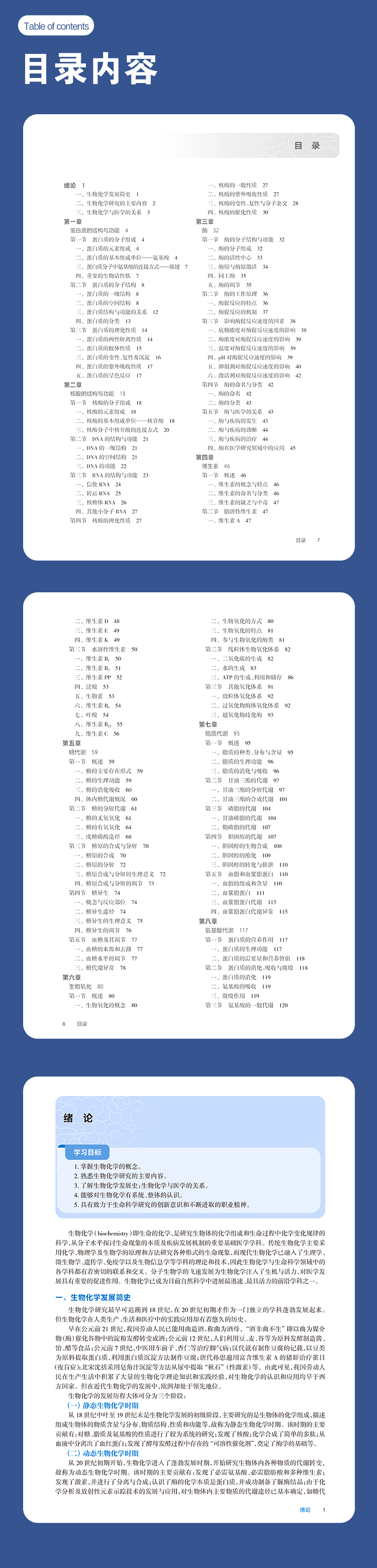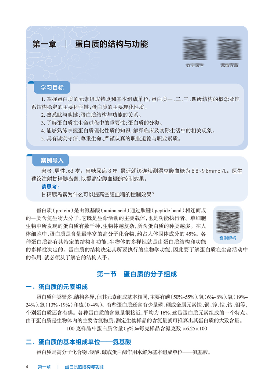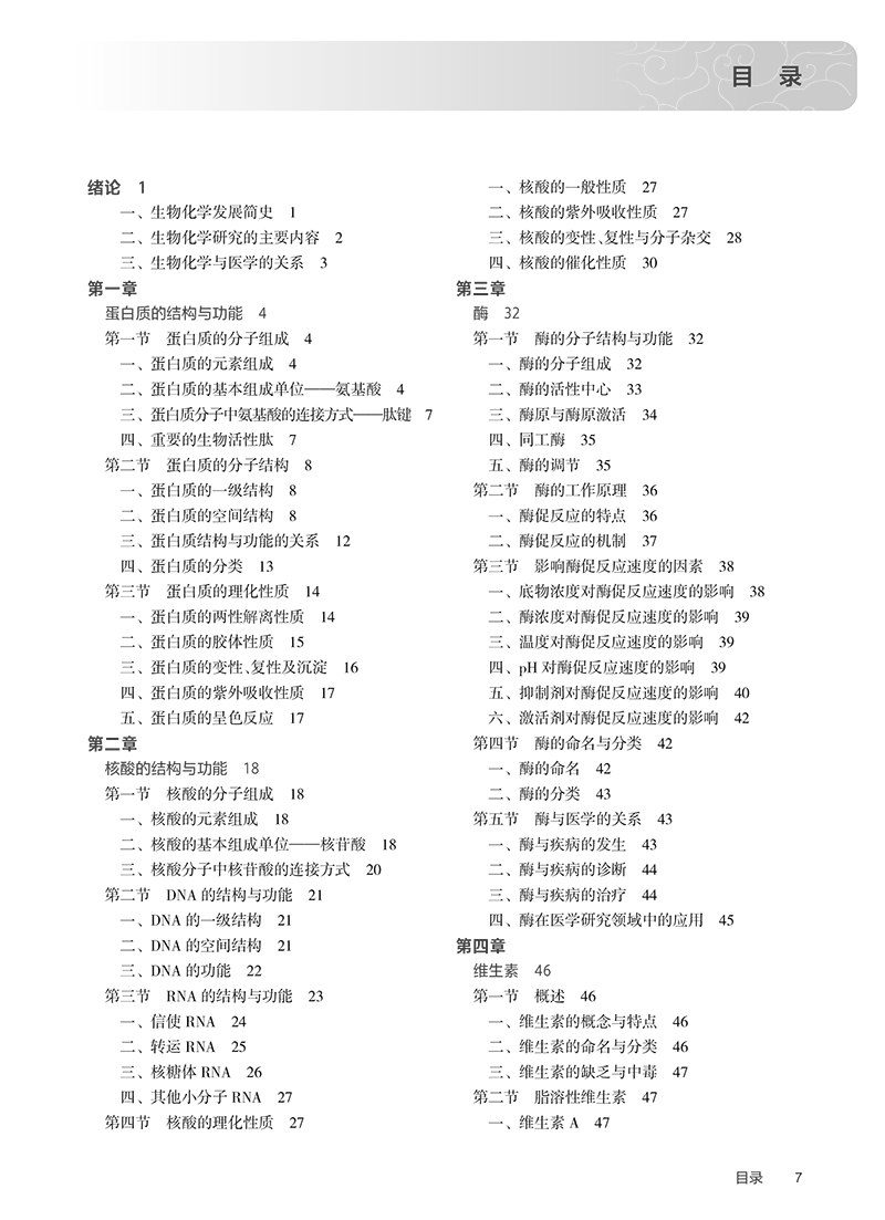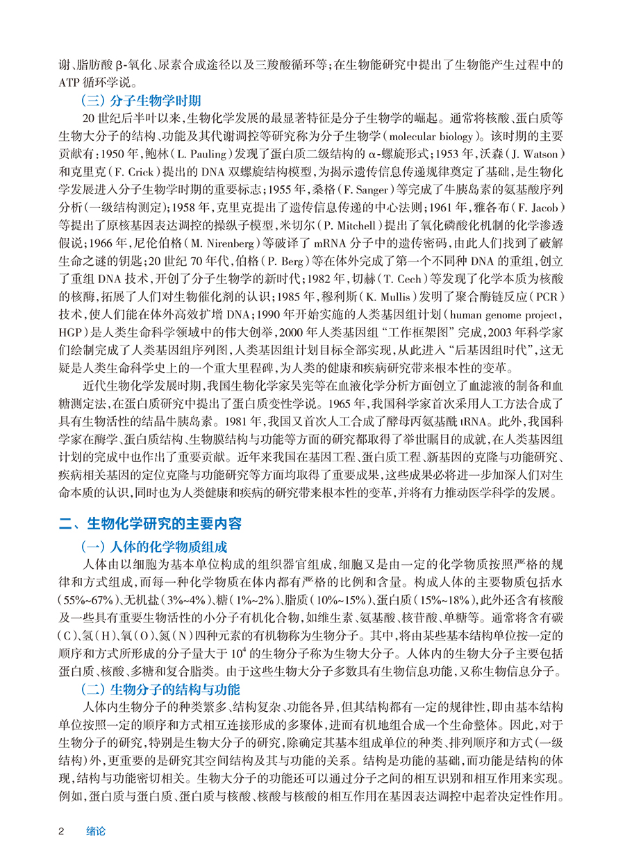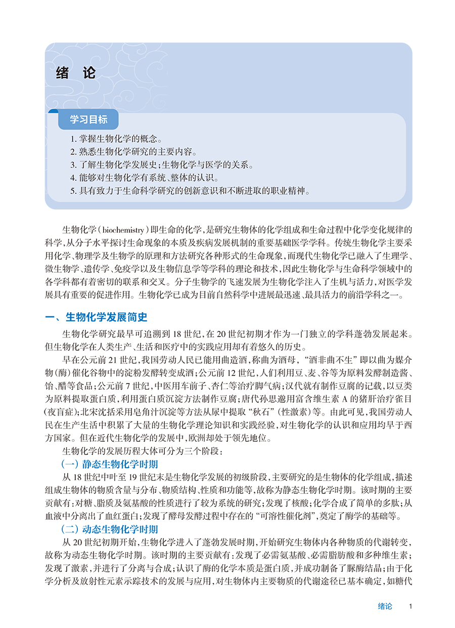 此为国家卫生健康委员会“十四五”高等职业教育专科临床医学专业规划教材之一。全书分4篇共19章。第一篇为结构生物化学,分4章介绍蛋白质的结构与功能、核酸的结构与功能、酶、维生素。第二篇是代谢生物化学,分6章介绍糖代谢、生物氧化、脂质代谢、氨基酸代谢、核苷酸代谢以及物质代谢的联系与调节。第三篇为遗传信息的传递,分4章介绍DNA的生物合成、RNA的生物合成、蛋白质的生物合成、基因表达调控。第四篇是医学生化专题,分5章介绍细胞信号转导、癌基因与抑癌基因及生长因子、基因工程与分子生物学常用技术、肝的生物化学、水与电解质代谢及酸碱平衡内容。