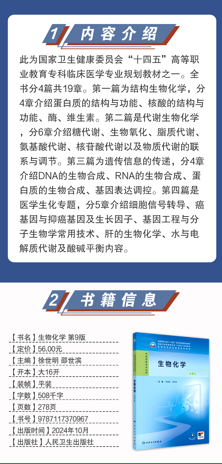 生物化学 第9九版 十四五规划教材全国高等职业教育专科教材 徐世明 邵世滨主编 供临床医学专业用 9787117370967人民卫生出版社