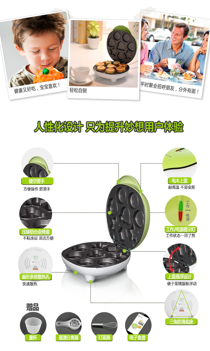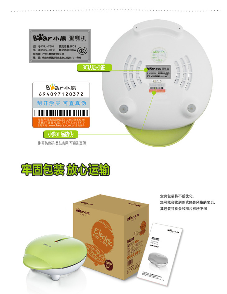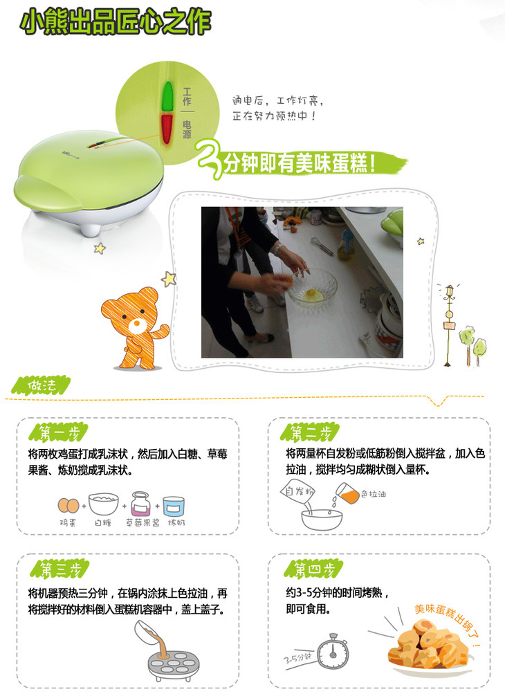 小熊(Bear)电饼铛双面加热蛋糕机家用全自动迷你卡通华夫饼机DGJ-C601