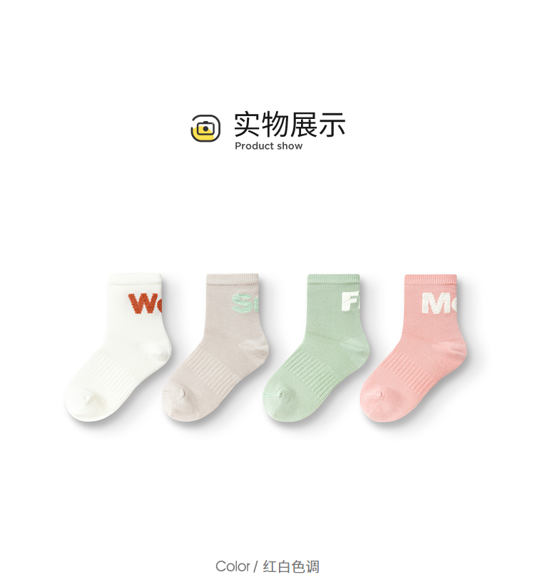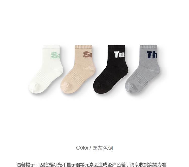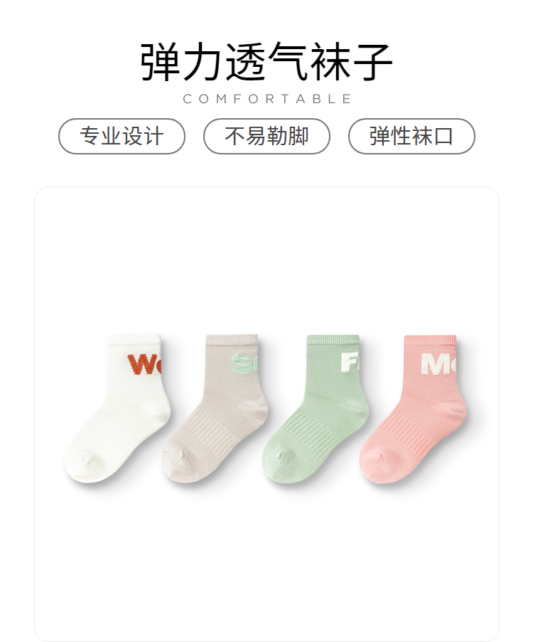 巴拉巴拉男女童袜子棉袜儿童宝宝大童简约字母撞色舒适发热四双装