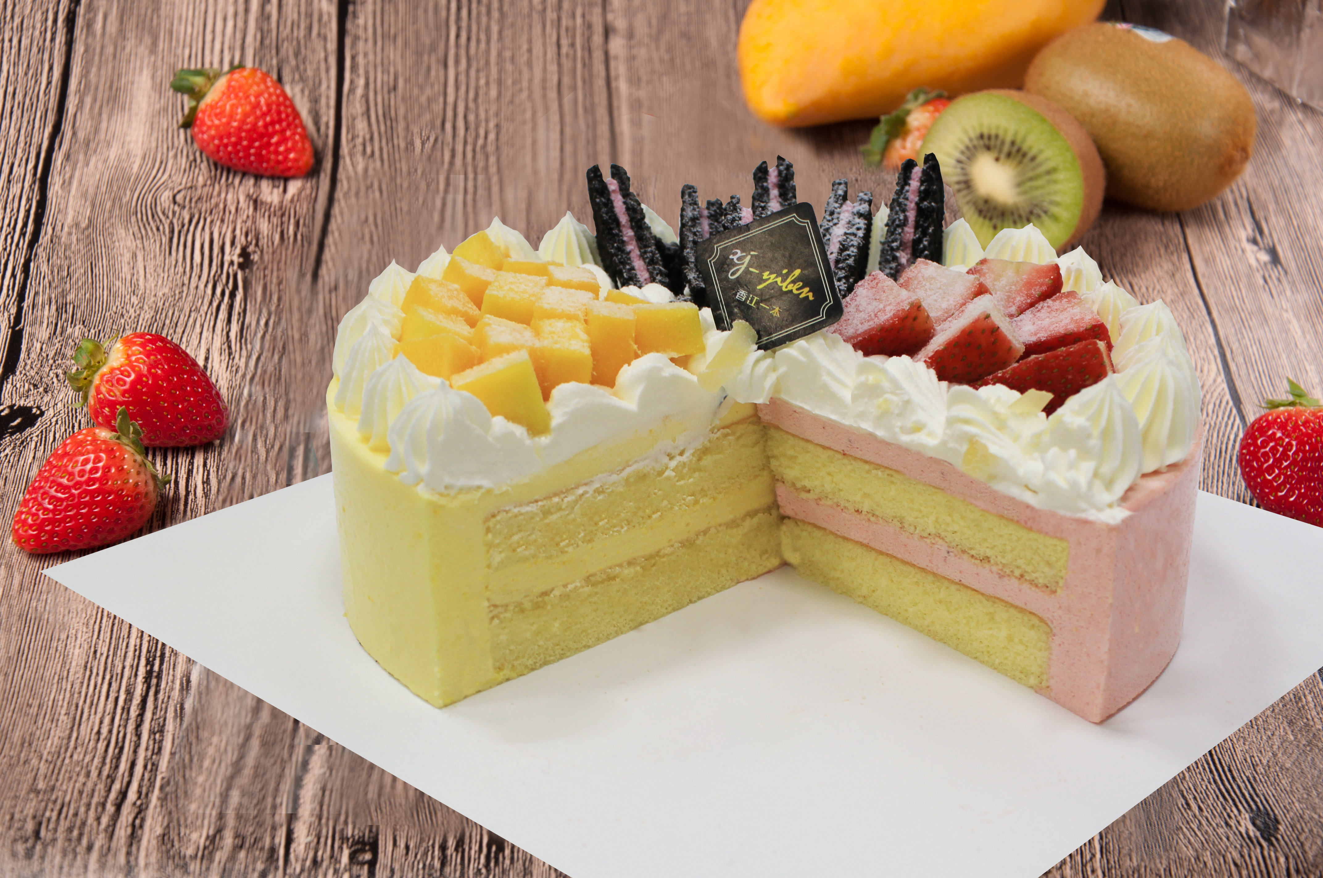 【甜蜜恋恋8英寸】草莓 芒果 双拼 慕斯蛋糕(提前6--8小时下单,18:00后下单最快第二天15:30后可到店取货,具体时间看门店而定。)