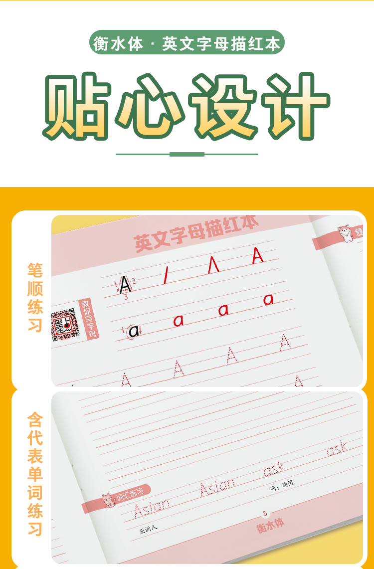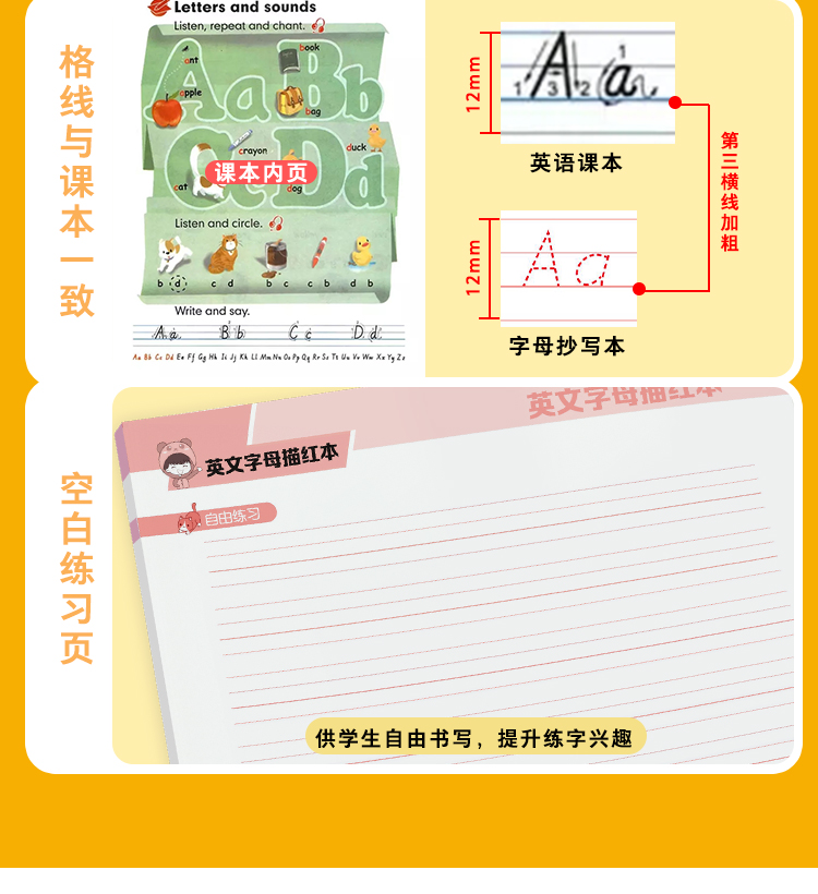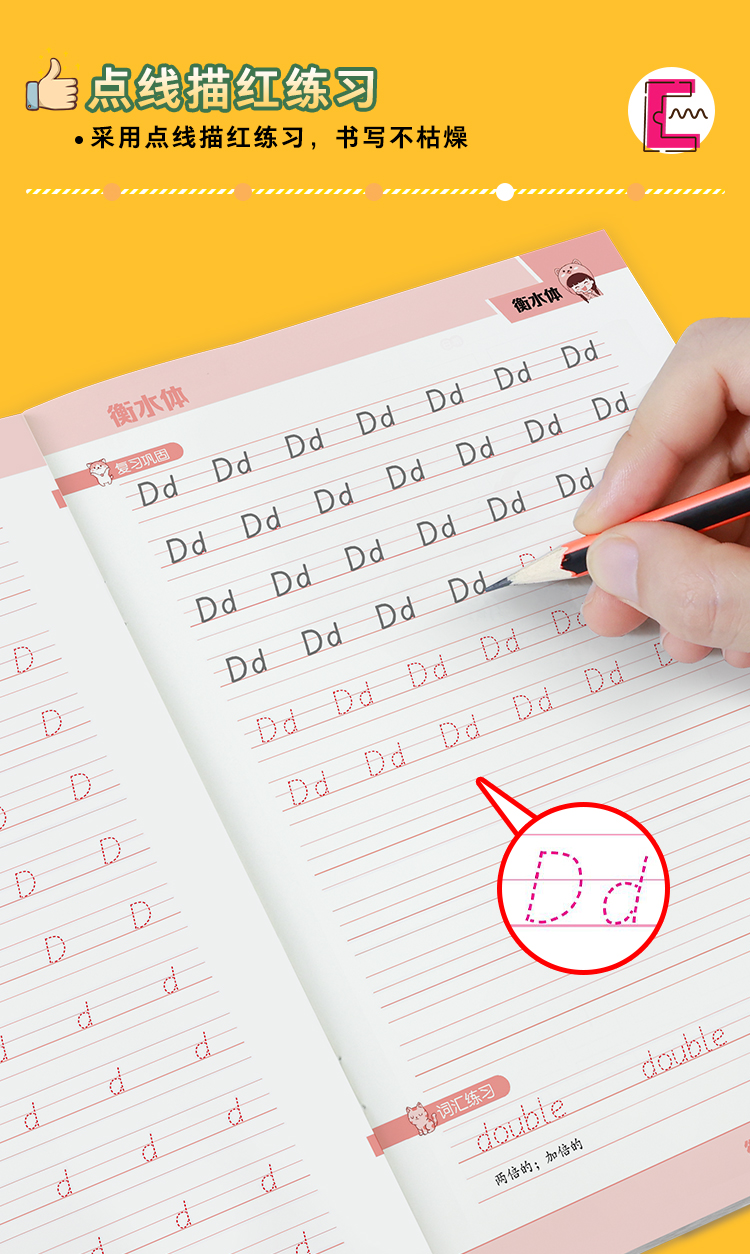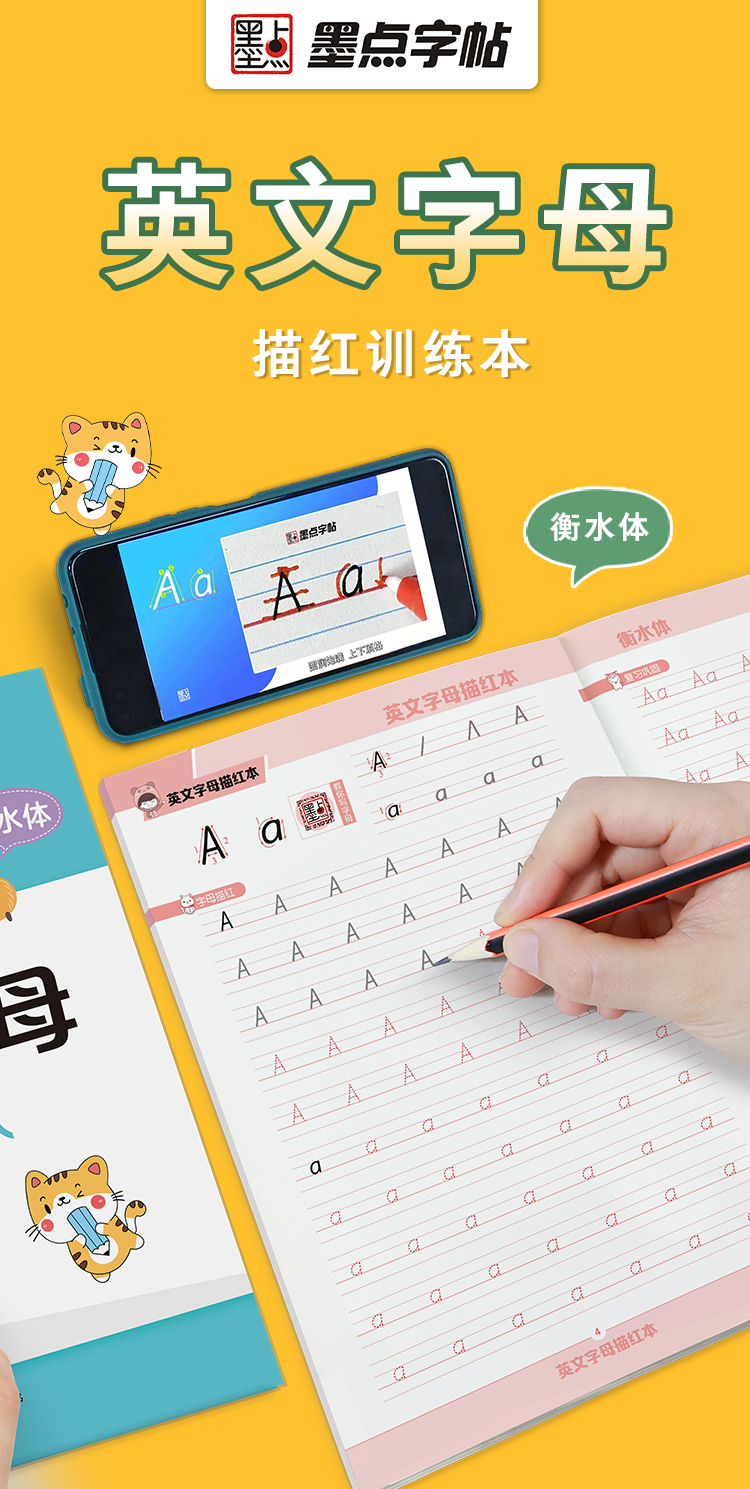 墨点衡水体三年级英语字帖小学生26个英文字母大小写练习本儿童幼儿园一二三年级上册下册人教版课本同步临摹英语字母描红本练字帖