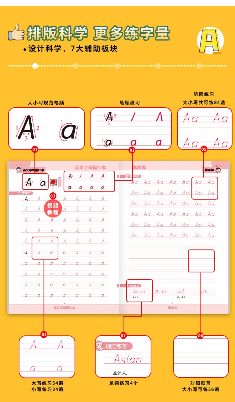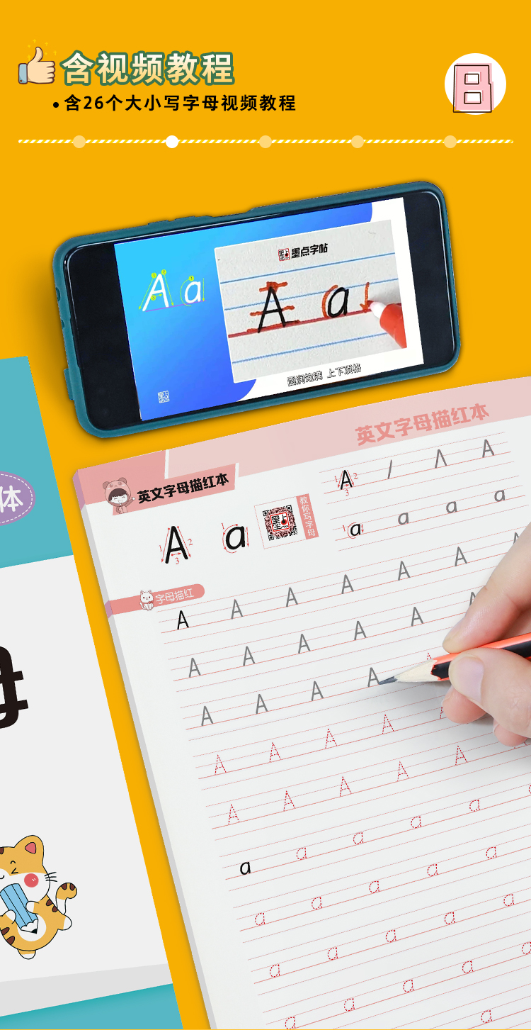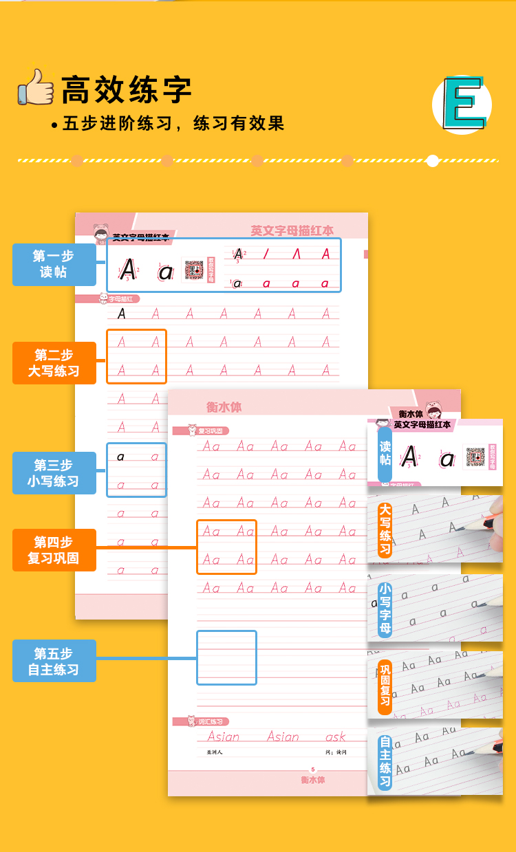 墨点衡水体三年级英语字帖小学生26个英文字母大小写练习本儿童幼儿园一二三年级上册下册人教版课本同步临摹英语字母描红本练字帖