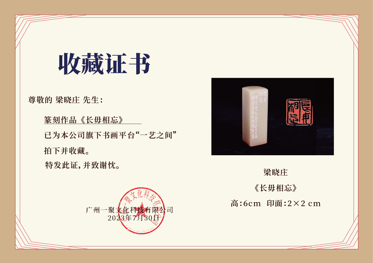 梁晓庄篆刻印章2x2x6CM丨长毋相忘(长毋相忘,庚辰[2000]年冬至于羊石之南,晓庄法秦印颇得其意) 手工巴林石篆刻作品[原作编号:ZK003]