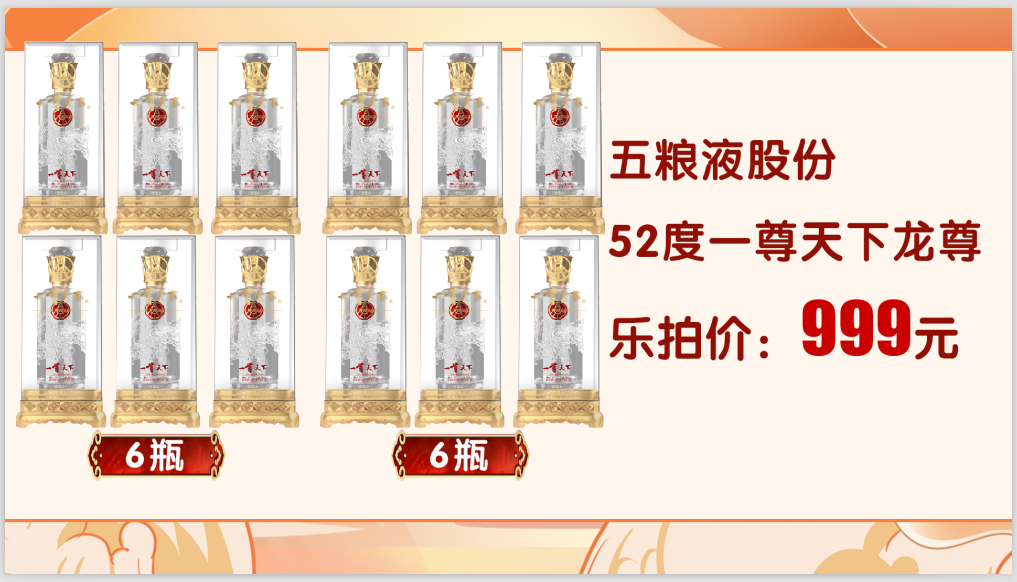 赠52度一尊天下龙尊500ml/瓶*6瓶/箱*1、手提袋*3
