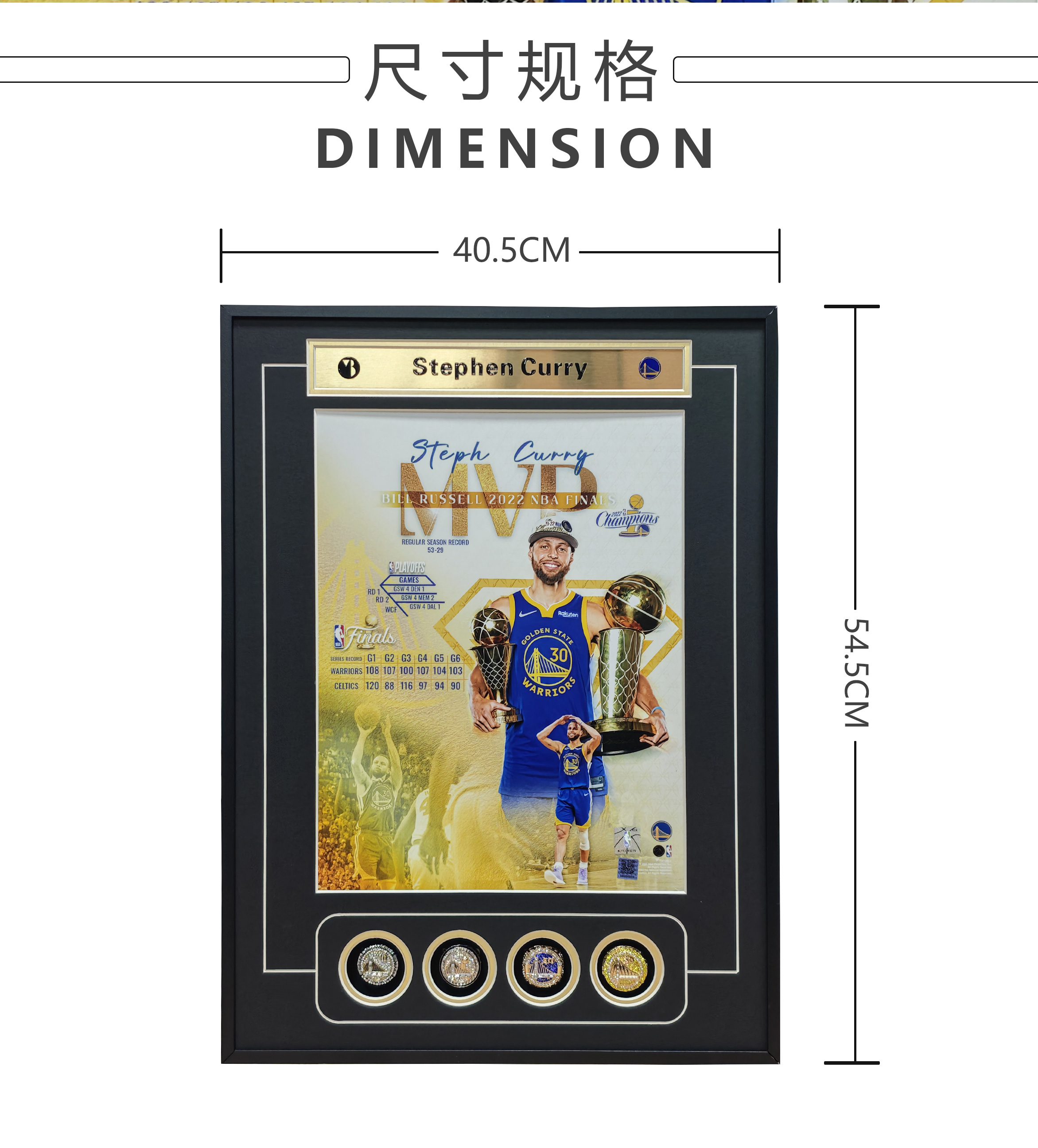 收藏系列 斯蒂芬库里 纪念装饰画 2022年勇士总冠军 库里FMVP(非亲签)