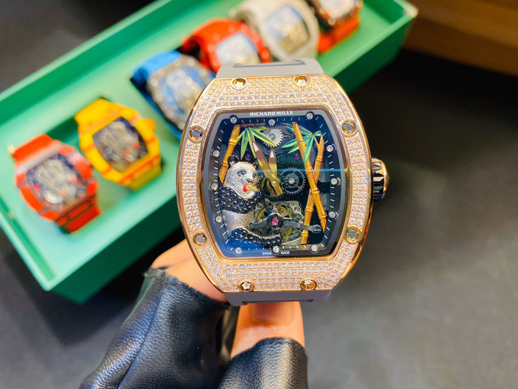 RM26 – 01 国宝大熊猫镶嵌全钻陀飞轮复刻腕表:匠心独运的腕间瑰宝!在制表与珠宝艺术交融的璀璨星空中,理查米尔(Richard Mille)的 RM26 – 01 国宝大熊猫镶嵌全钻陀飞轮腕表宛如一颗夺目的超新星,散发着无与伦比的魅力。如今,其复刻版本传承经典,以精妙绝伦的细节,续写着高级制表与高级珠宝跨界融合的传奇,值得我们细细品鉴。