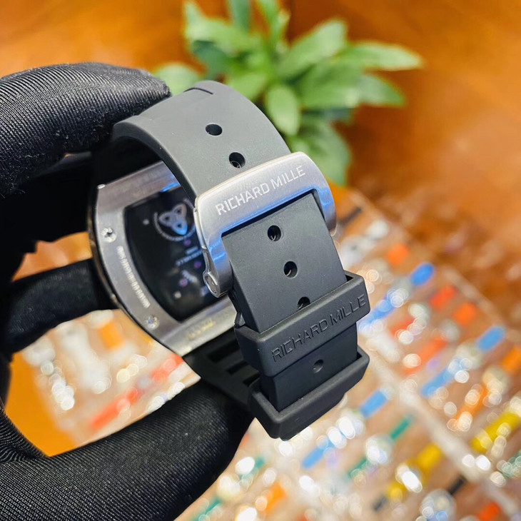 酒桶表壳更是凝聚了制表工艺的精髓。复杂高难度的线条与角度设计,背后是无数次严苛测试与反复打磨的艰辛历程。不锈钢材质的表圈、中层表壳和表底盖,经由钛合金螺丝巧妙镶嵌,实现了表面与内部深度的完美调和。这种材质组合既保证了表壳的坚固耐用,足以抵御日常佩戴中的磕磕碰碰,又在质感上形成了冷暖色调、轻重质地的和谐搭配。双镂空底板的设计堪称神来之笔,从各个角度望去,机芯内部精密复杂的构造毫无保留地展现在眼前,陀飞轮有条不紊地运转,齿轮间的啮合、发条的蓄力,每一个细微动作都是机械之美与时间韵律的完美演绎,让观赏者如同置身于微观机械世界,领略制表工艺的深邃奥秘。