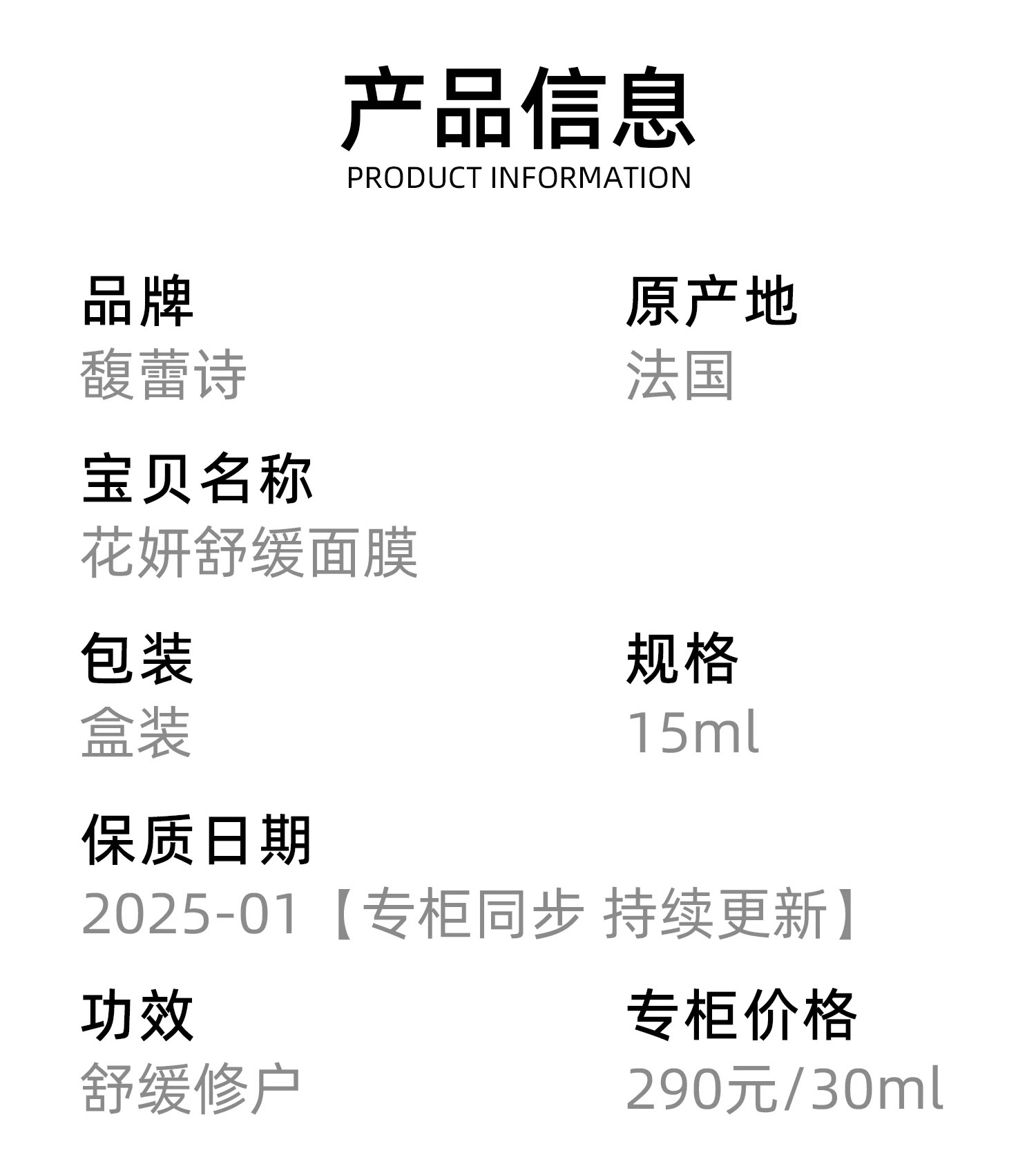 【专柜小样】法国 Fresh馥蕾诗 繁花保湿舒缓涂抹面膜 15ml